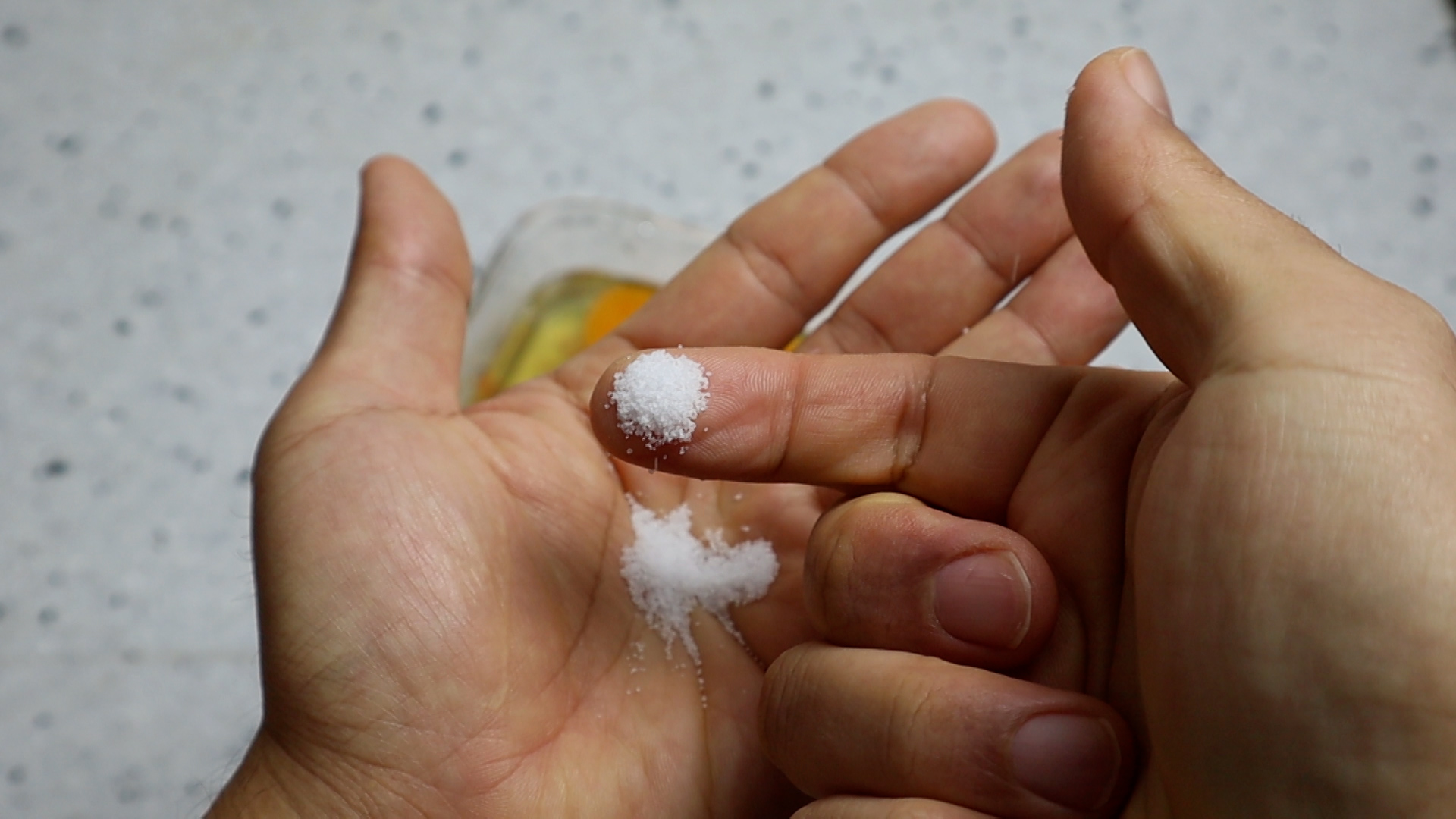 6. 양념란에 적힌 재료를 전부 넣어주세요. 소금은 맛소금을 사용해주시고 양이 애매하시면 손가락으로 집어 3꼬집 정도 넣어주세요.