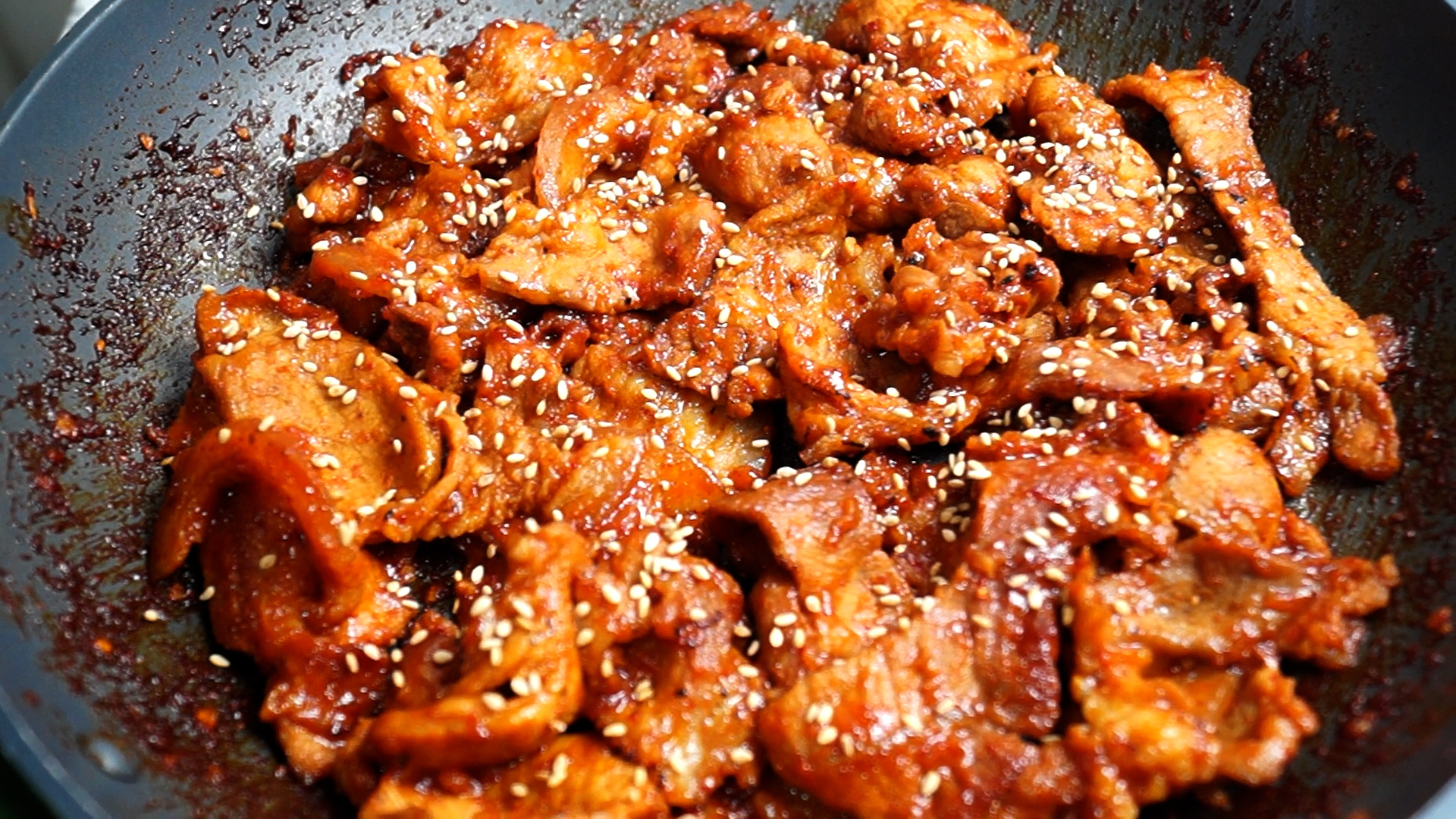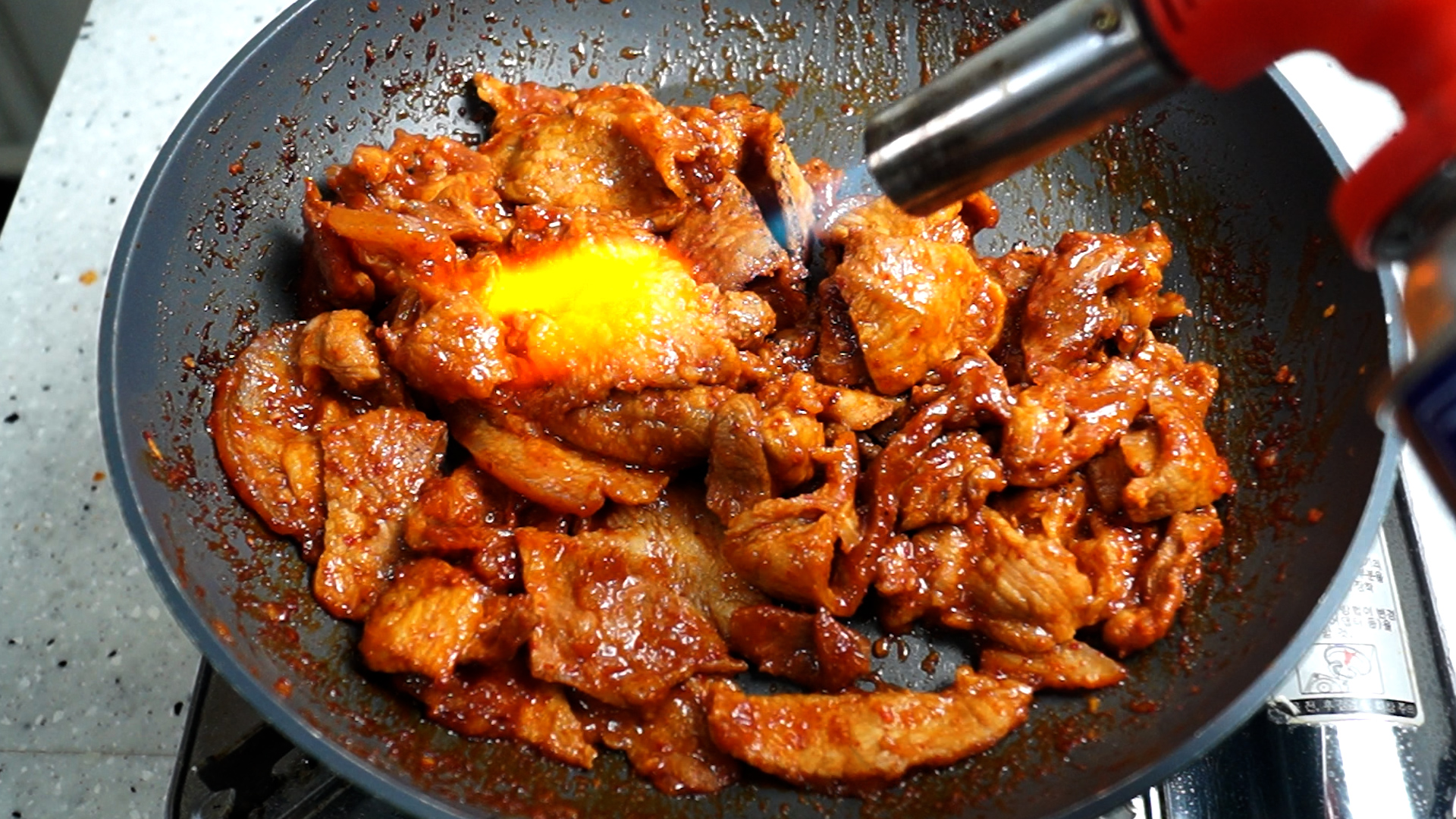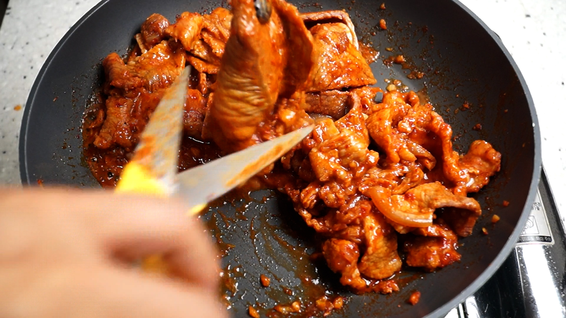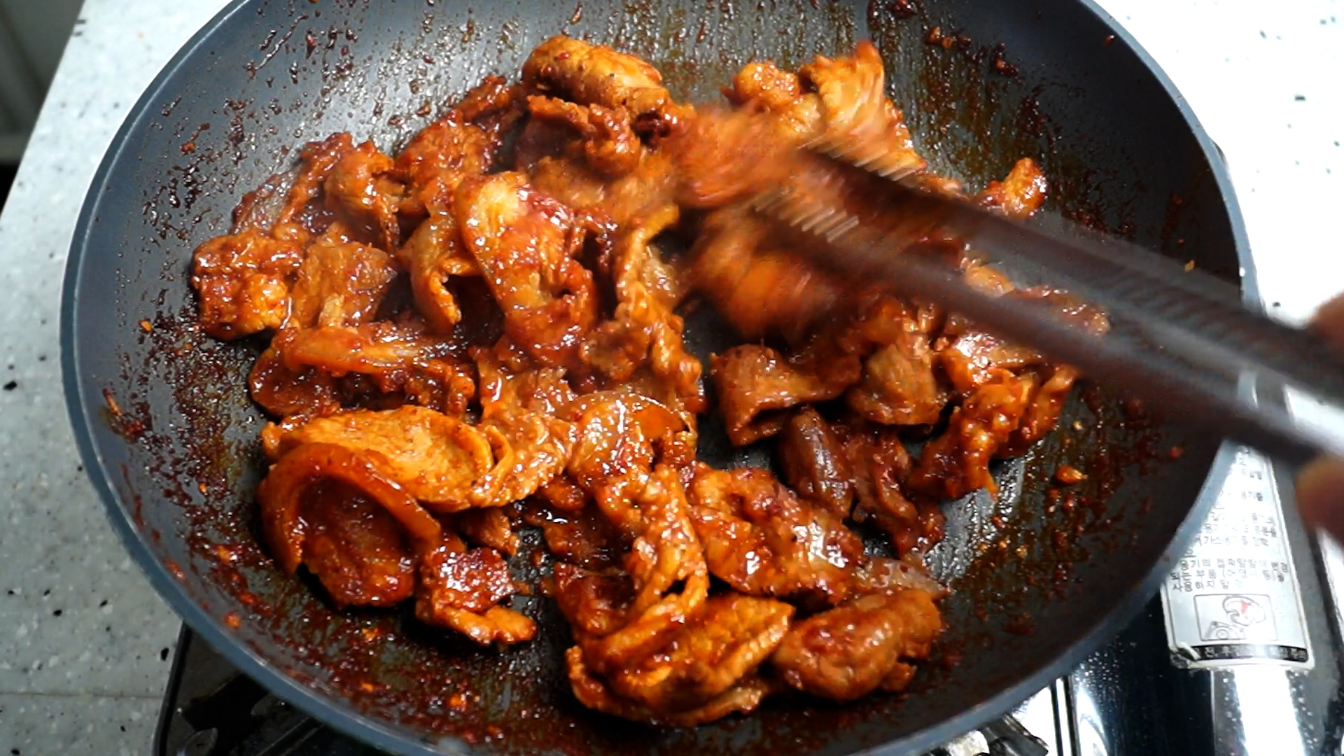 10. 양념때문에 고기가 익었는지 안익었는지 모르겠으면 강불에 5~6분을 볶아주세요.(고기가 얇을때만 가능)