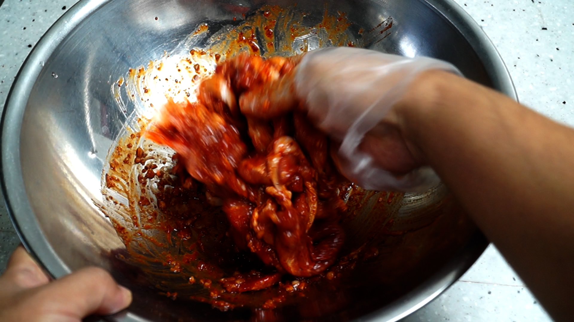 6. 고기에 숙성된 양념을 전부 부어서 잘 섞은 다음 2~3시간 냉장보관해주세요.