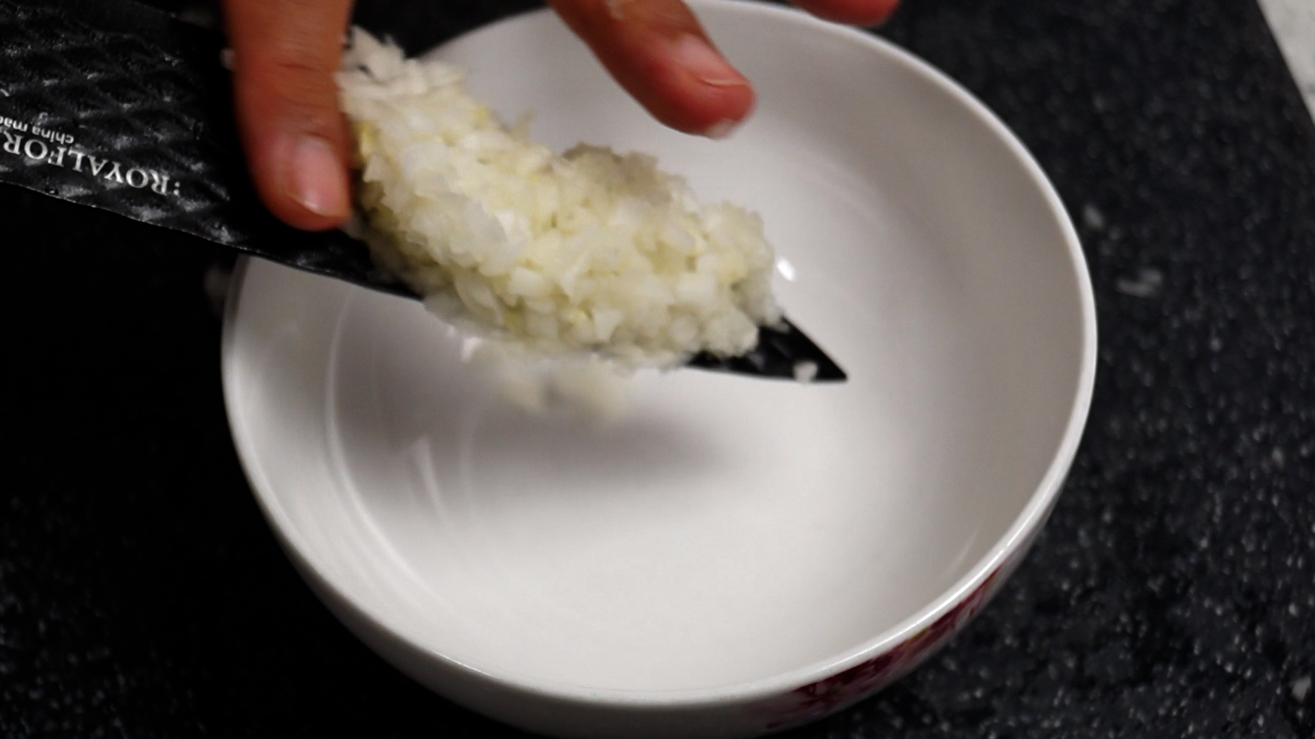 1. 양파 30g을 최대한 잘게 다져주세요. 믹서기에 갈아야 하는데 양이 적어서 잘 안갈릴테니 최대한 잘게 다져주세요.