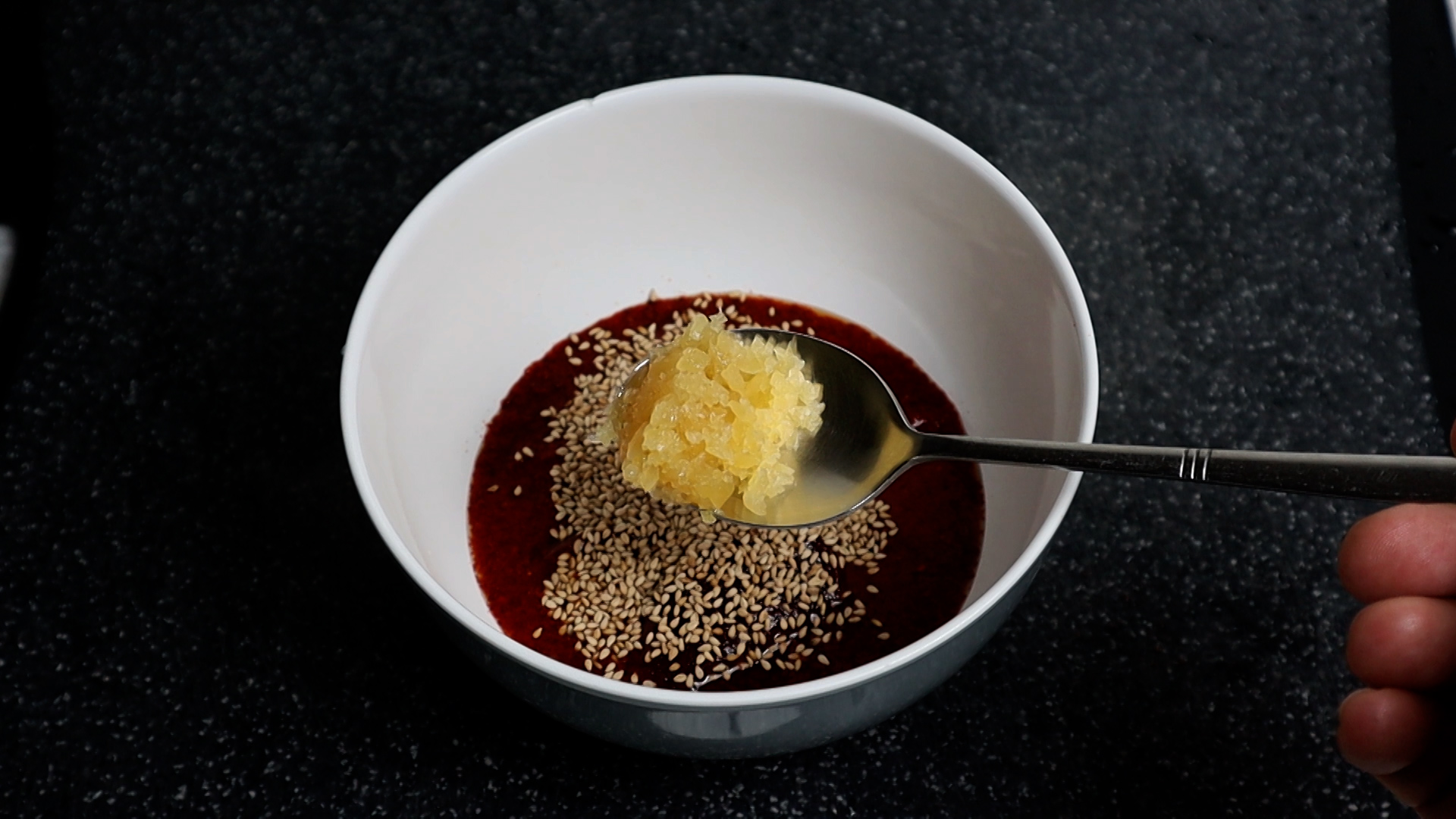 6. 통깨 1스푼과 간마늘을 넣어주세요.