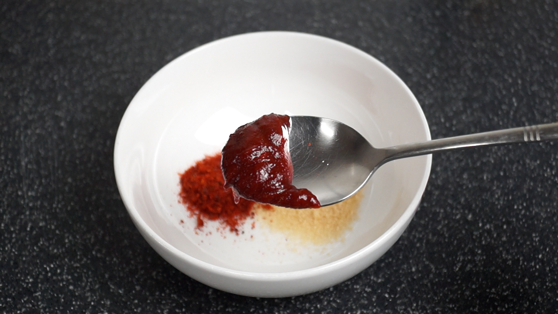 5. 고추장도 살짝 넣어주세요. 살짝 넣으면 고추장 맛은 하나도 안나고 양념이 소스에 착착 감기게 해줄뿐 아니라 색감도 살려준답니다.