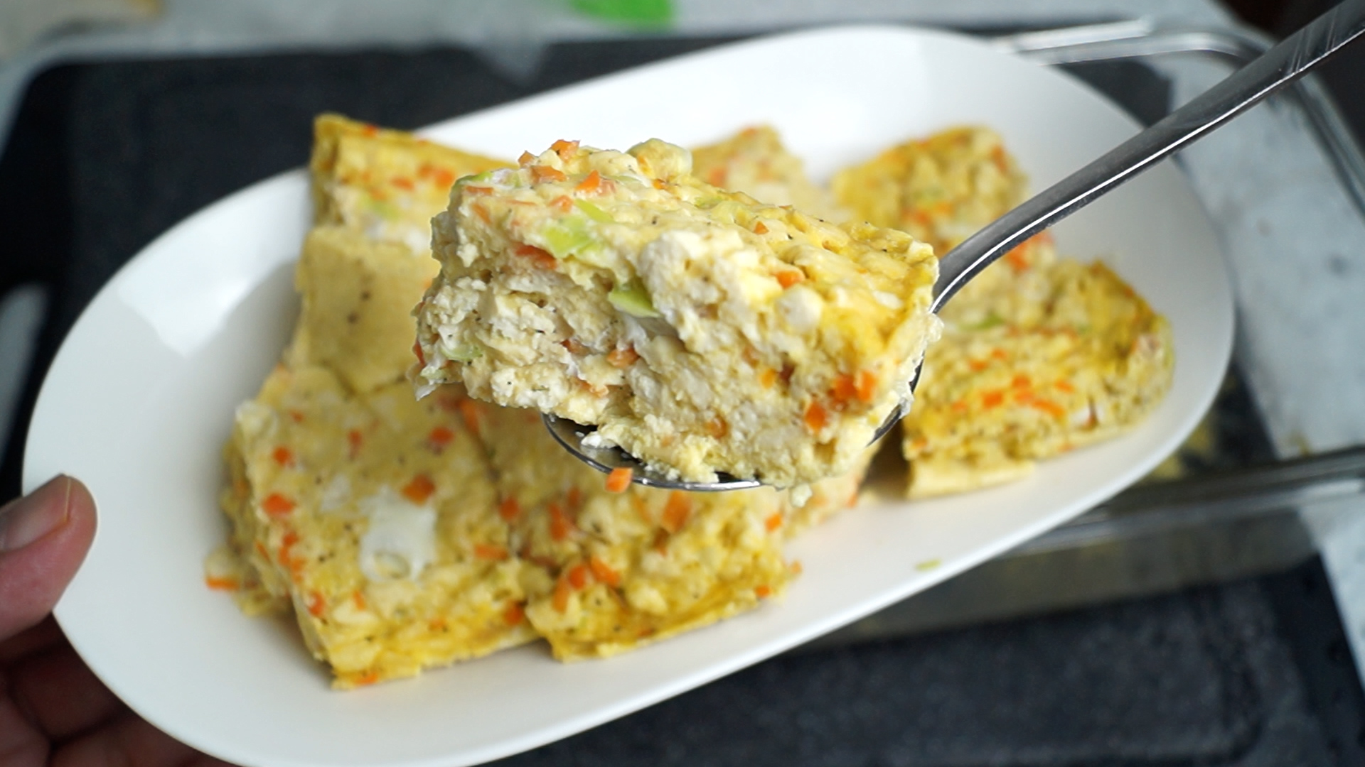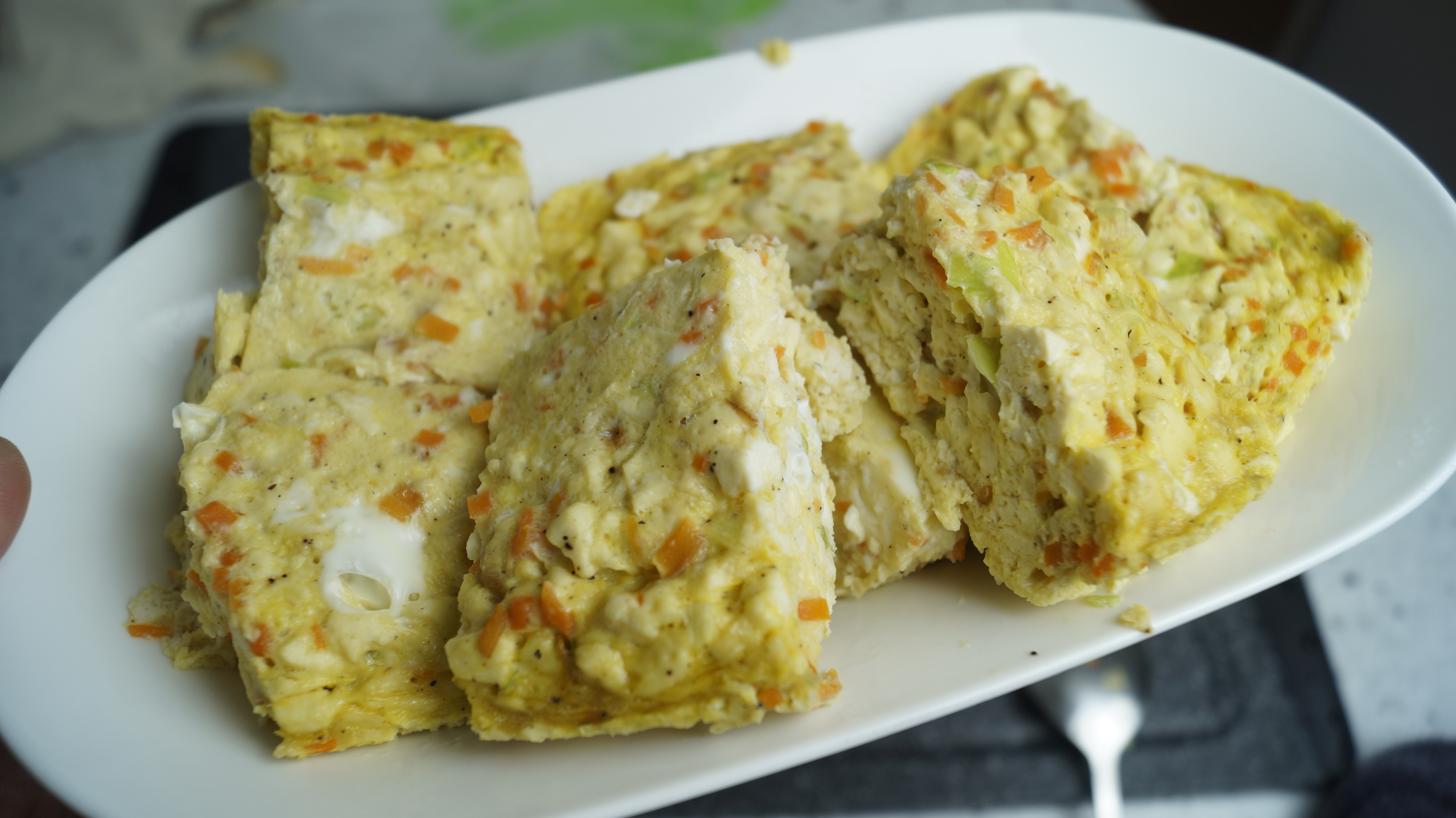 10. 두부, 당근, 대파 넣고 계란 3알을 까넣어주세요. 제 계란은 소란이라 좀 작은건데 대란일 경우는 맛소금을 1꼬집 정도 추가해서 간을 올려주세요.
