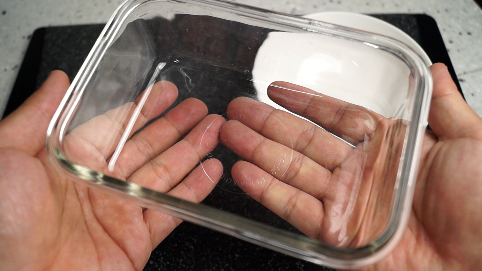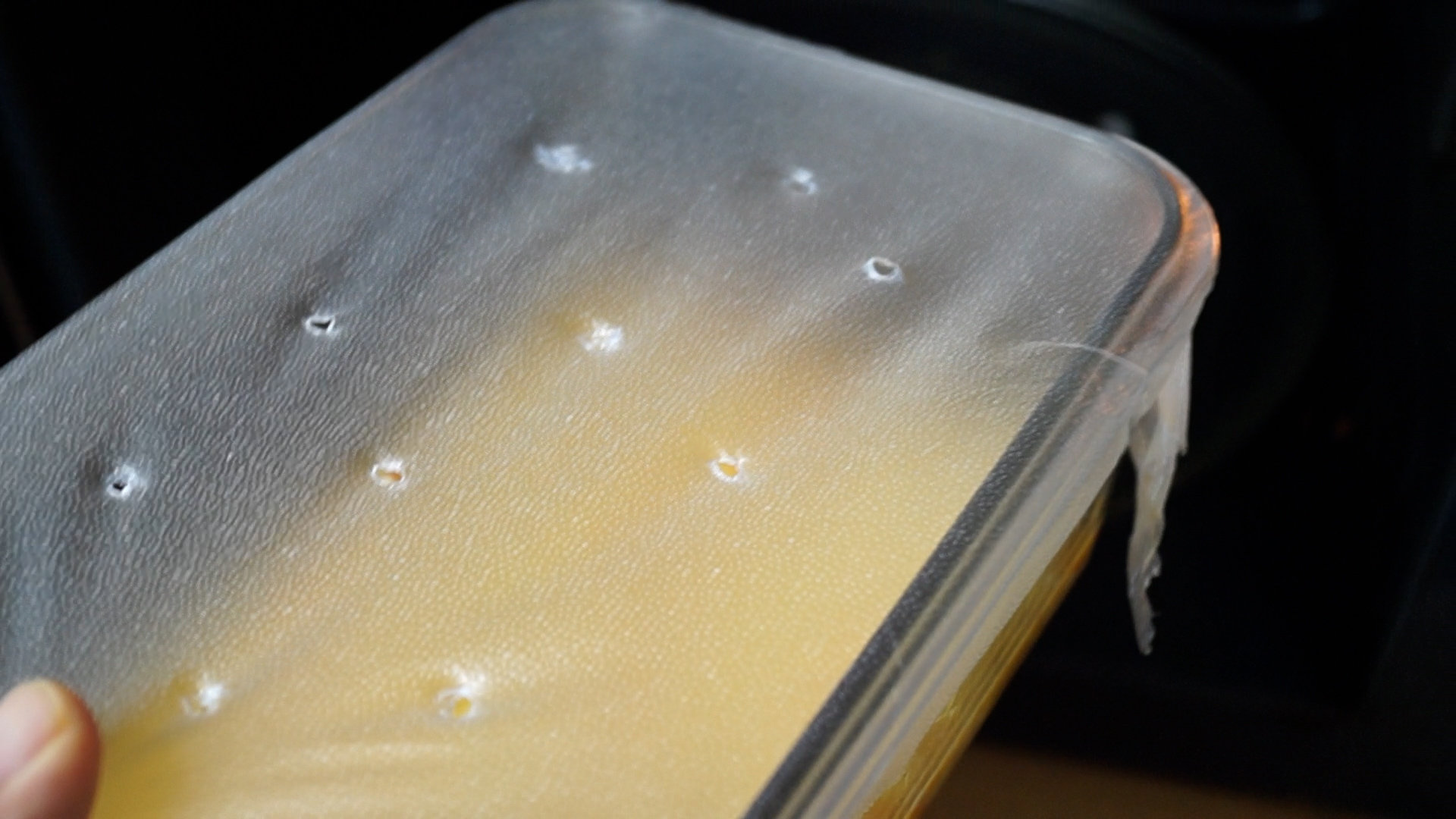 13. 전자렌지 사용가능한 전자렌지 전용랩을 씌워 젓가락으로 구멍 10개 정도를 뚫어주시거나 완전히 밀폐가 되지 않는 적당한 크기의 접시를 덮어주세요.