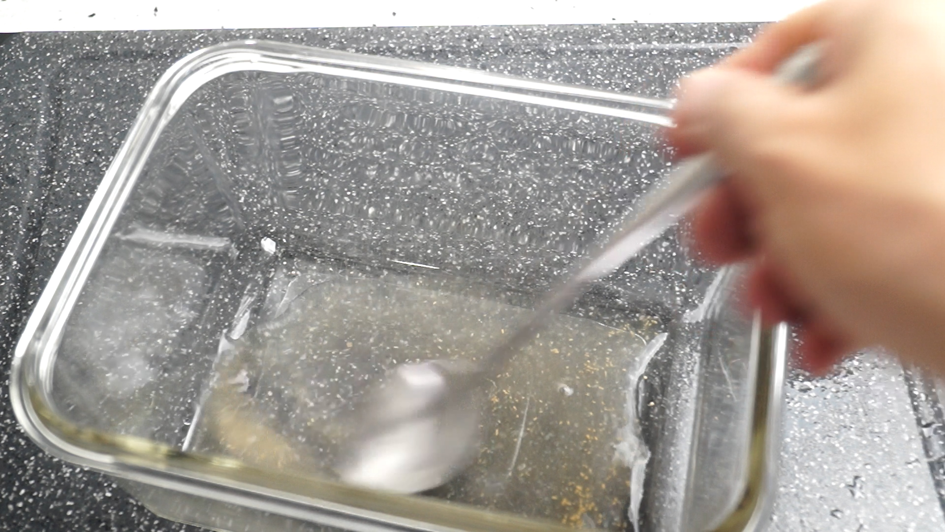 6. 내열용기에 혼다시와 물을 먼저 넣고 골고루 섞어서 혼다시를 녹여주세요. 혼다시 없으시면 멸치다시다나 소고기 다시다 쓰시면 됩니다. 물은 살짝 데워서 부어주면 혼다시가 잘 녹습니다.
