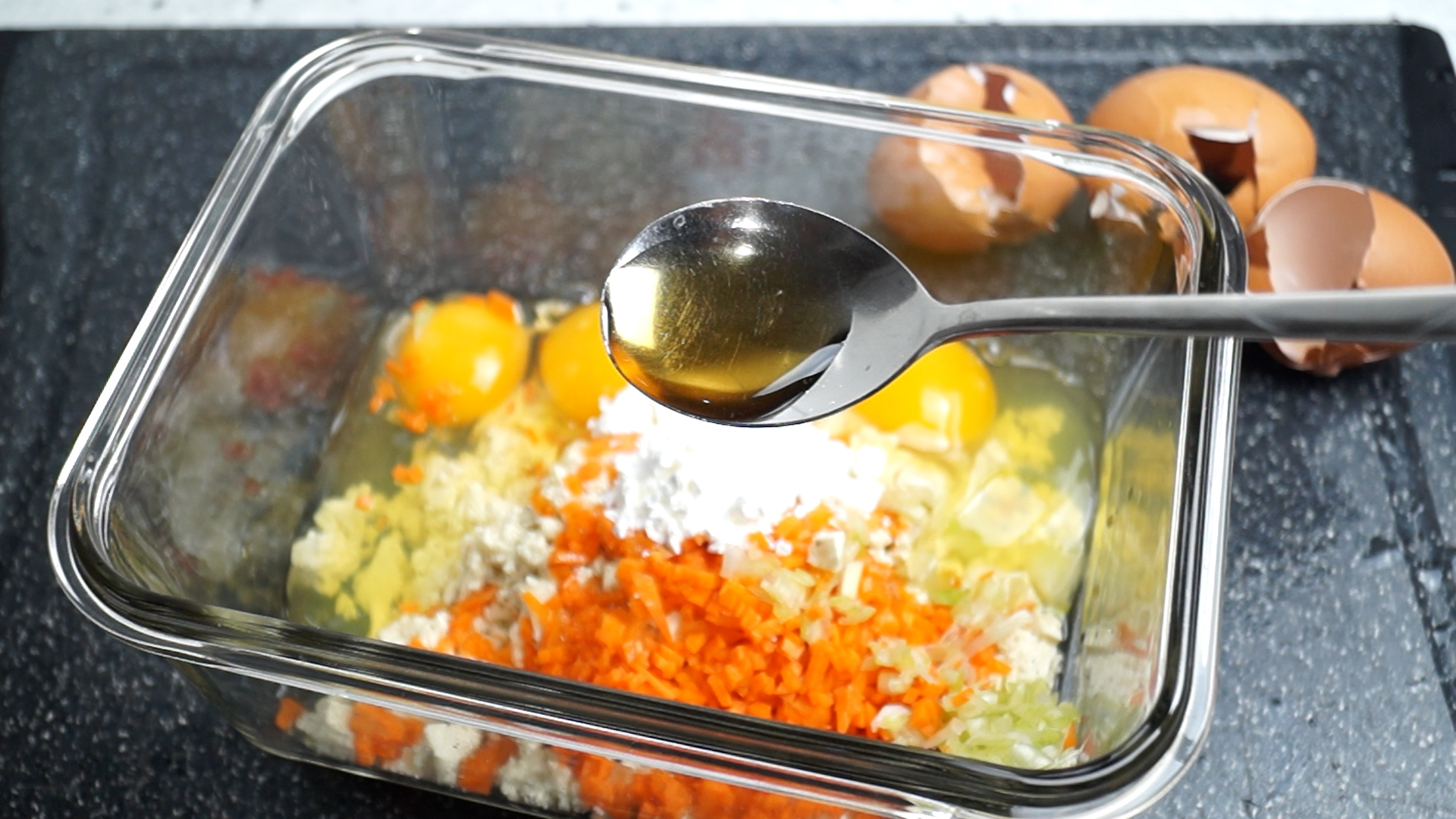 11. 전분가루를 살짝 더해주시면 계란찜이 더 탱글탱글 하답니다.