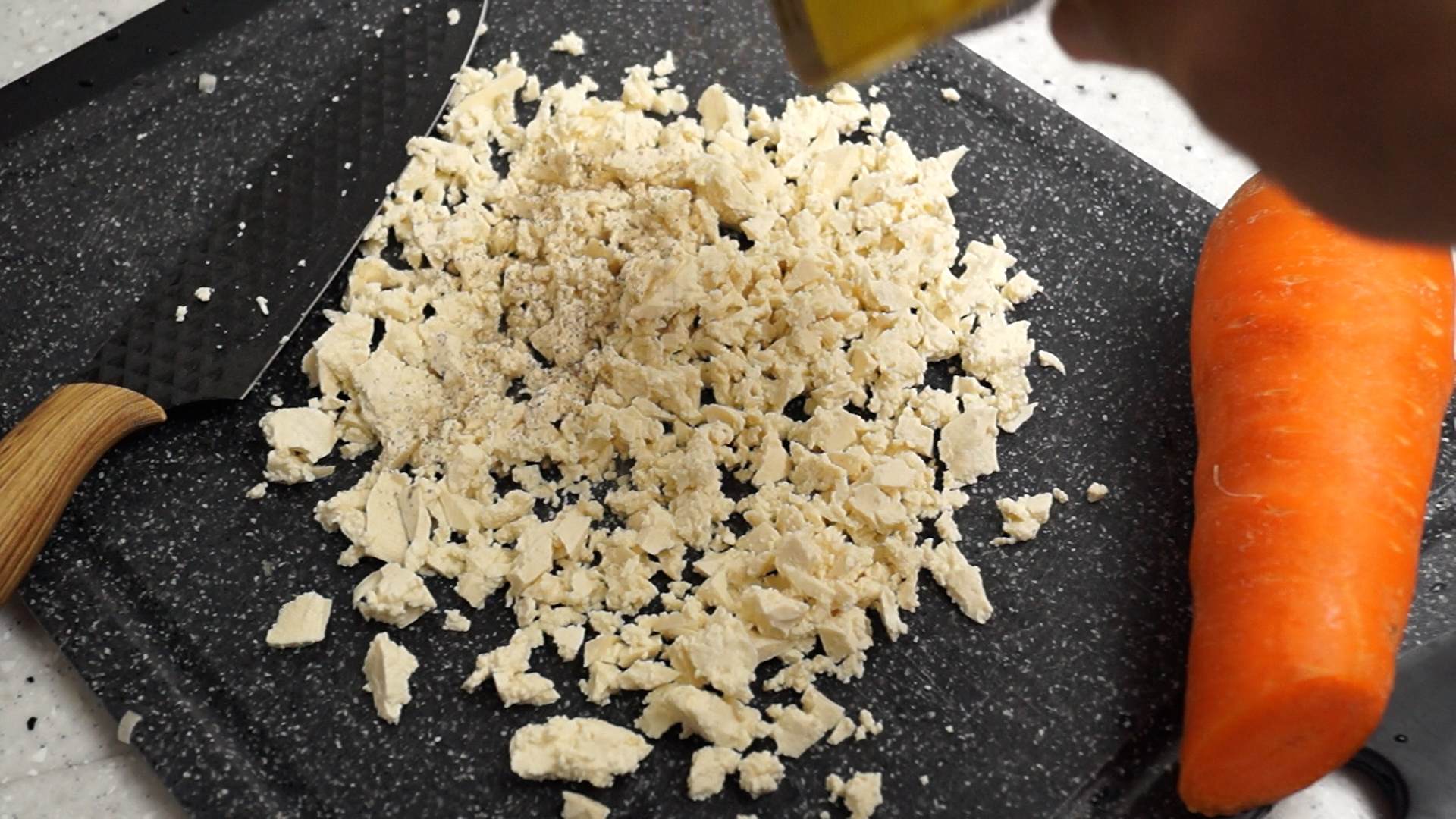 4. 두부는 수분 많은 찌개용 말고 수분이 적은 단단한 부침용 두부를 준비해서 잘게잘게 으깨주세