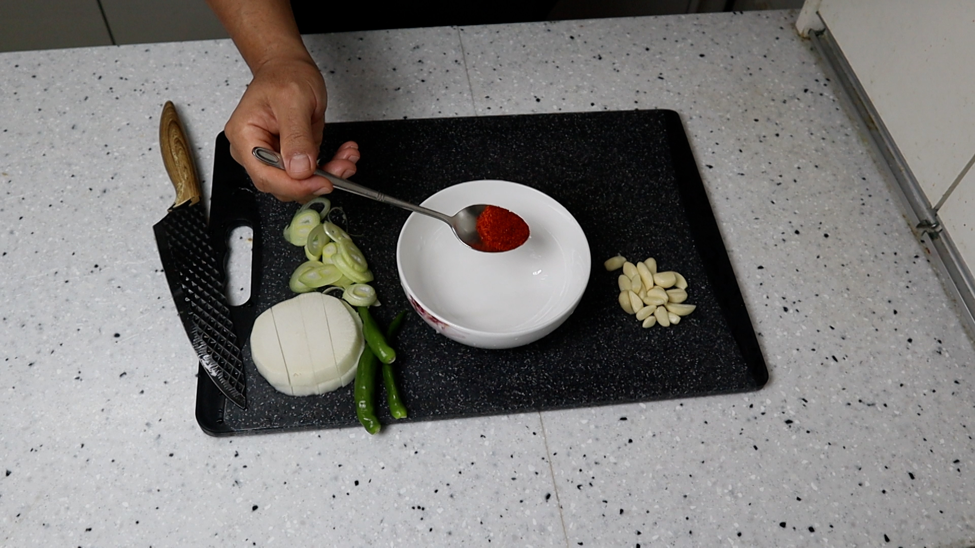 3. 양념장에 적힌 재료를 분량껏 볼에 넣어주세요. 고춧가루는 중간입자를 사용해주세요.