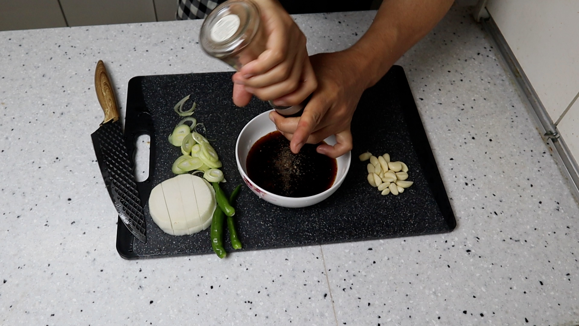 9. 후추가루를 넣고 골고루 섞어주세요.