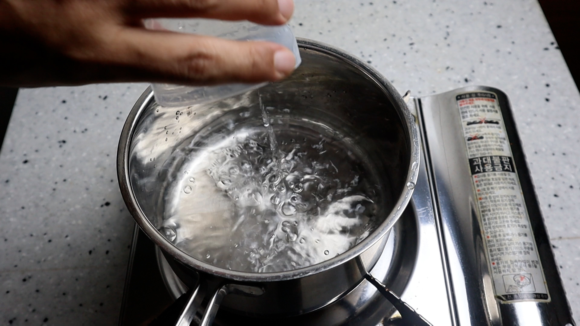 9. 냄비에 물을 붓고 라면은 신라면이나 열라면 또는 해물맛 라면 1봉을 준비해주세요! 요 3가지가 제일 잘 어울리더라고요. 물 양은 제품마다 상이하니 설명서를 참고하세요~