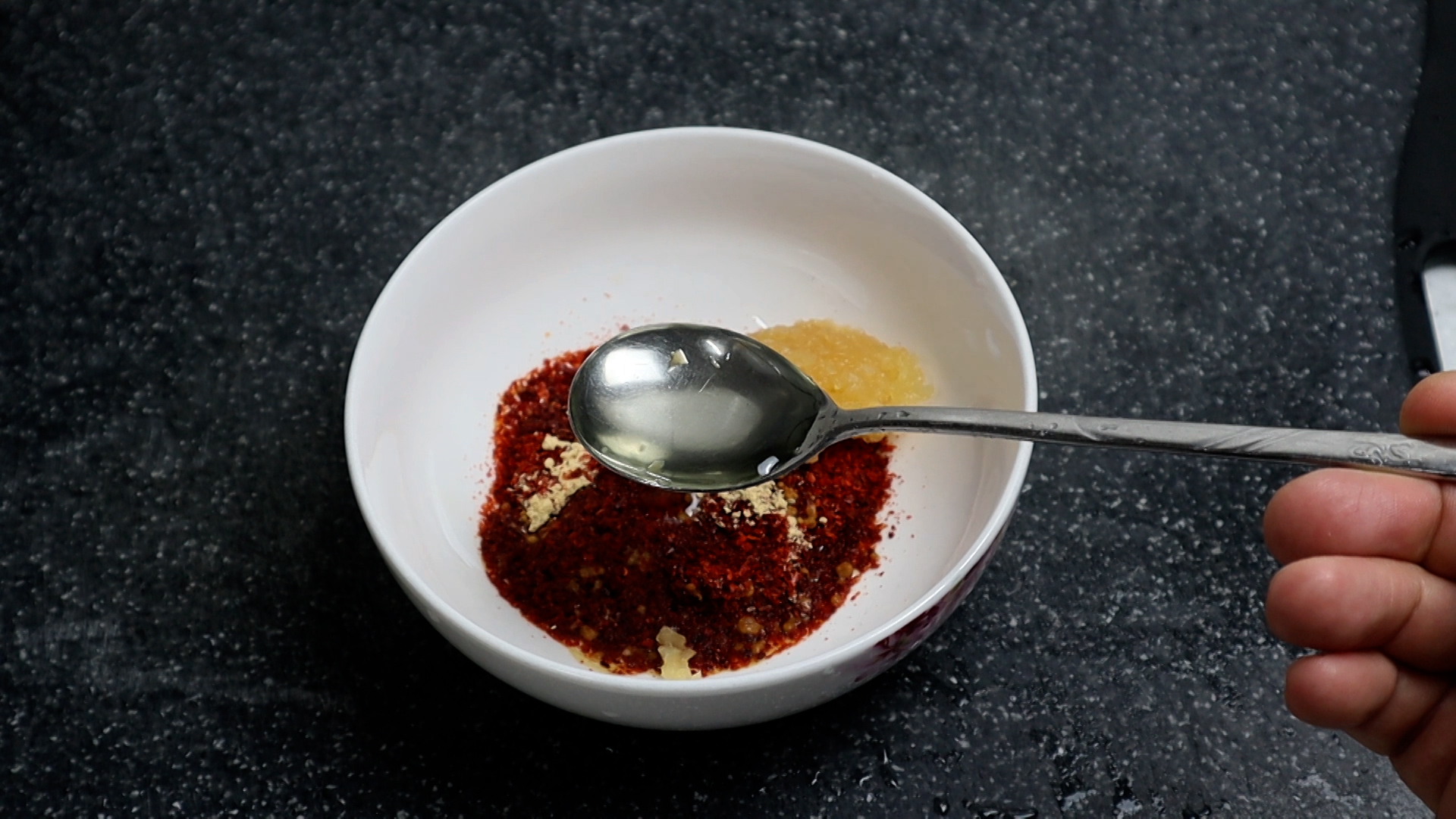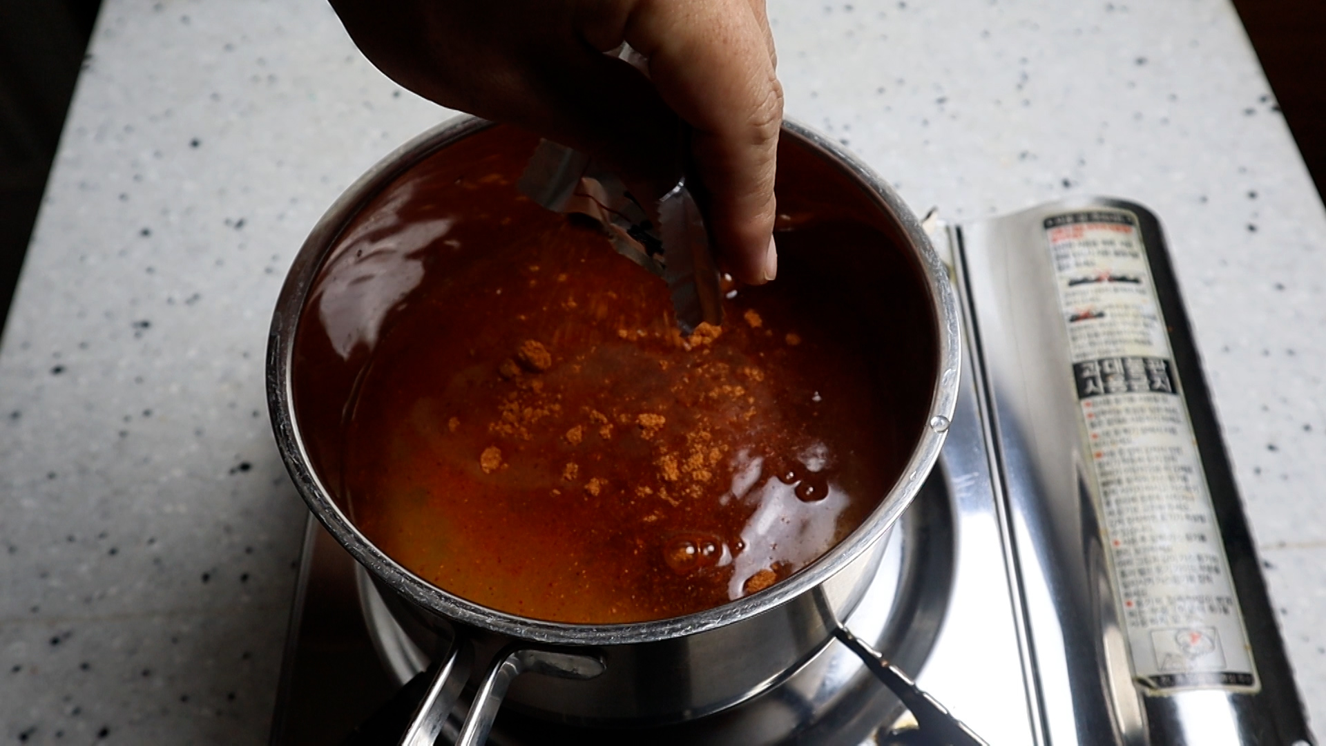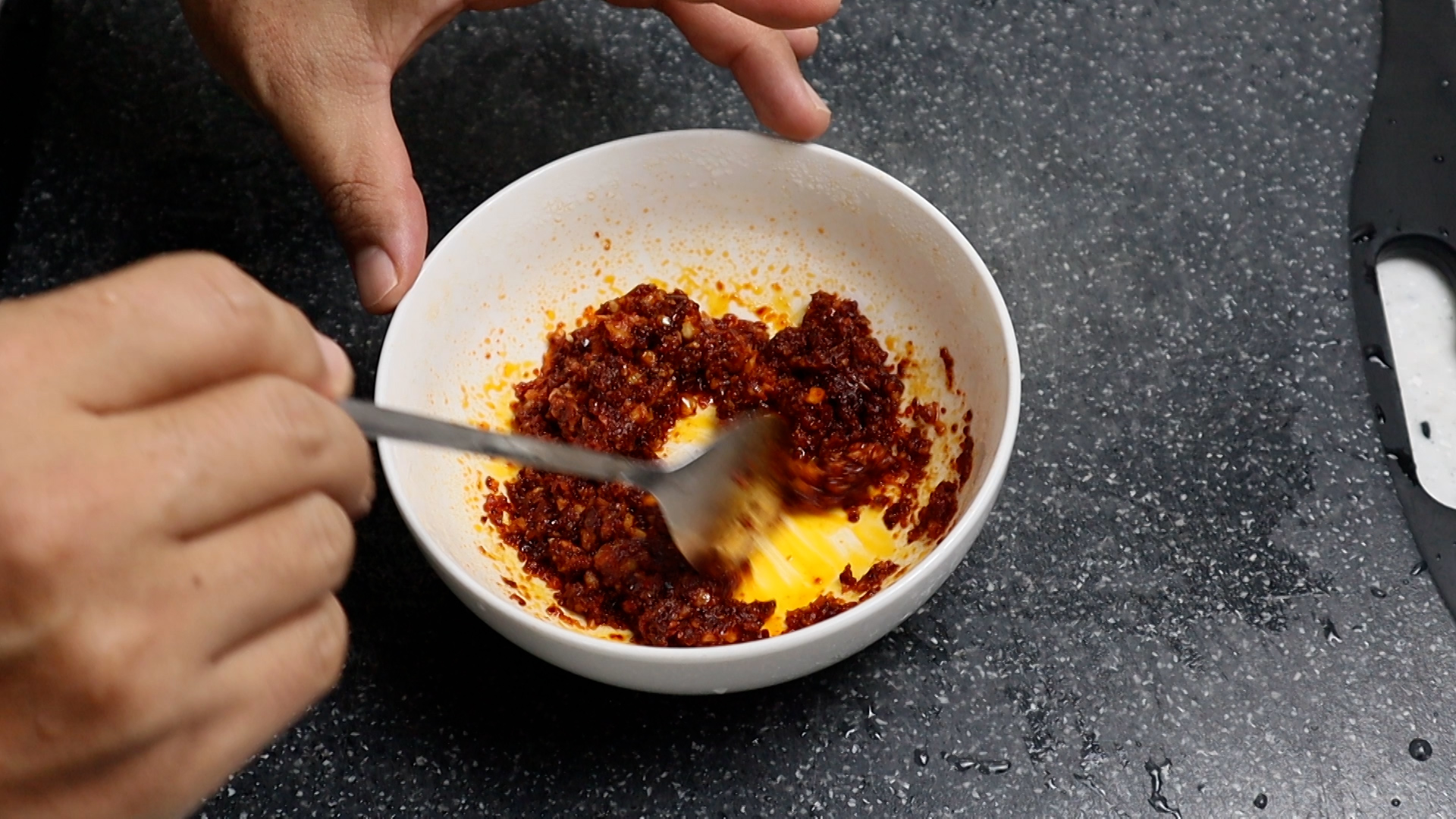 7. 꺼내서 골고루 한번 섞어주시면 진한~~ 고추기름 향이 솔솔솔 올라올거에요!