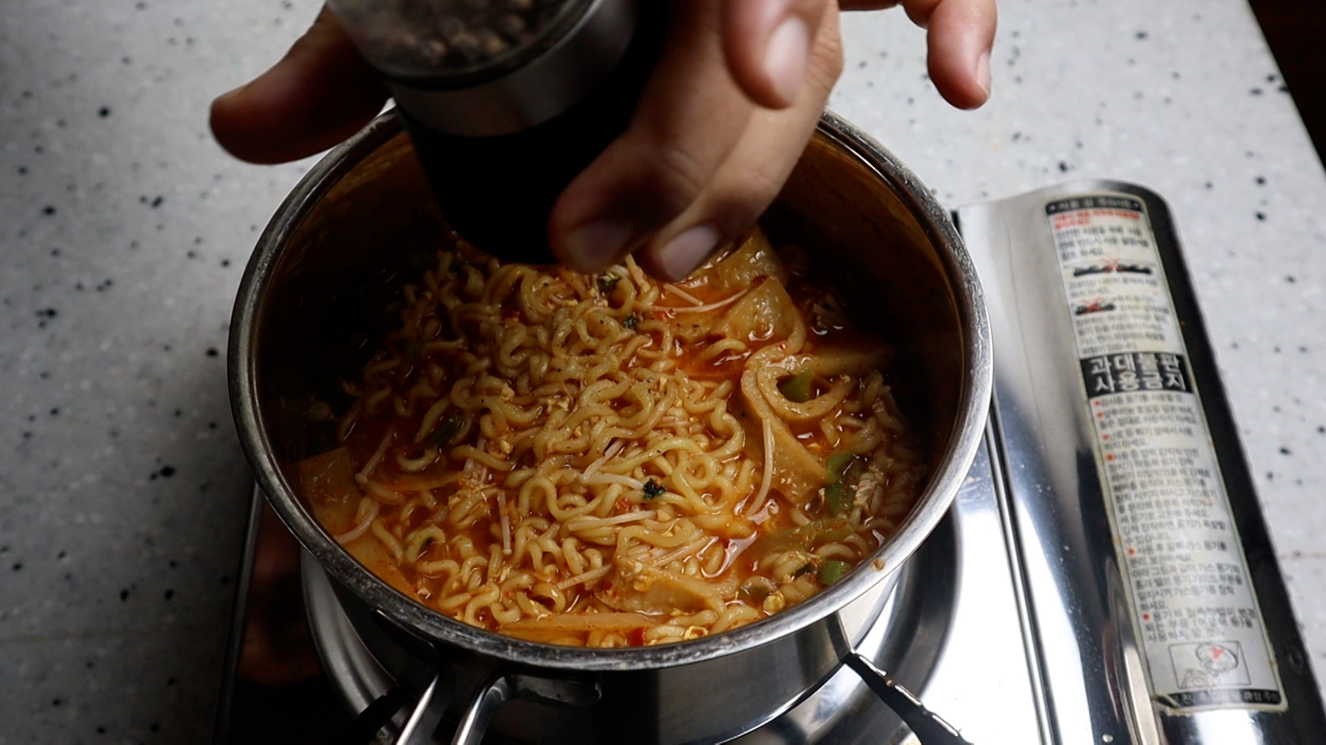 14. 마무리로 후추가루 톨톨톨~ 털어 넣어주면 아주 좋습니다!