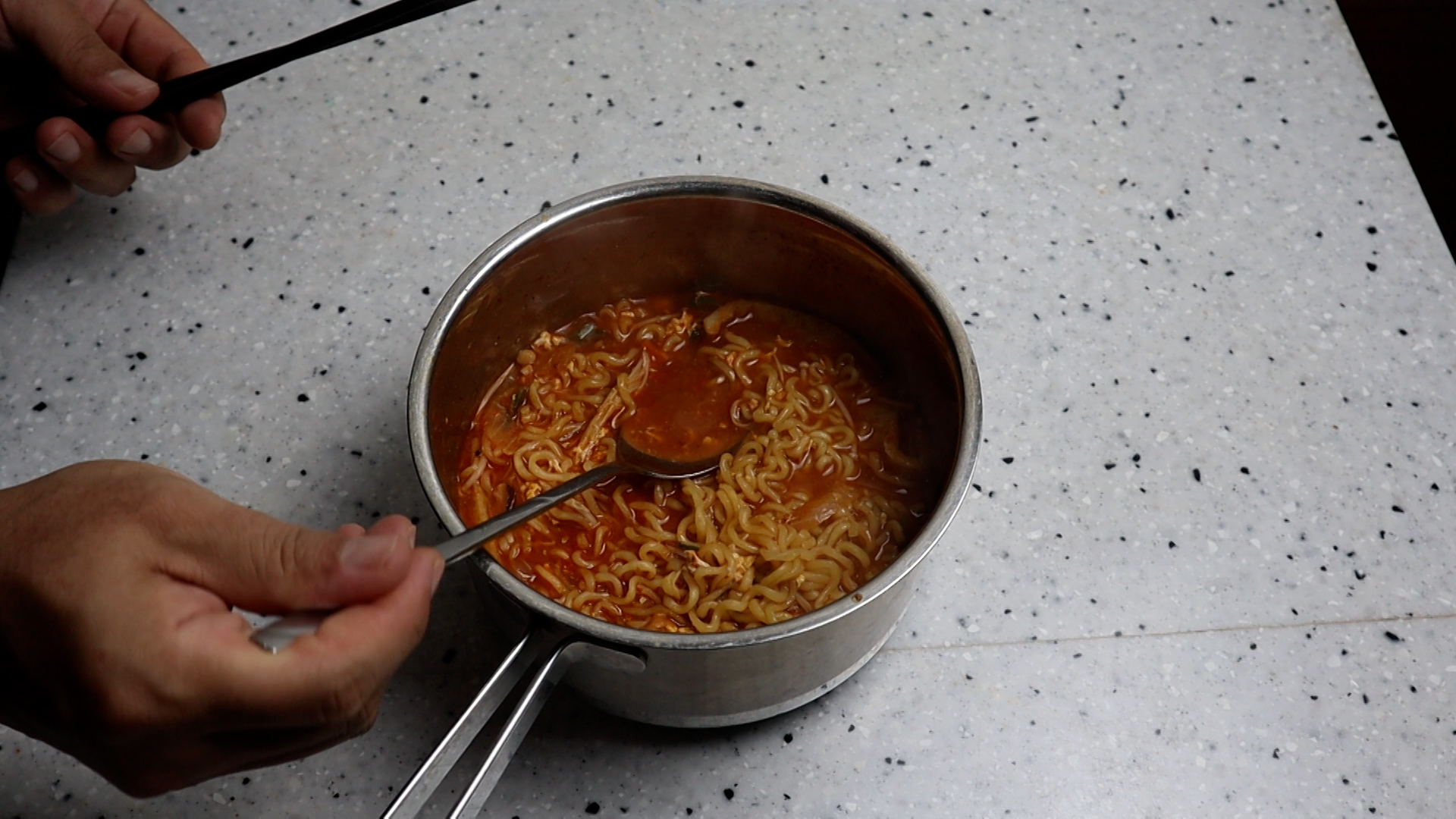 15. 얼큰하게 끓여진 국물 호로록 드셔보시고~ 라면도 맛있게 건져드셔보세요!