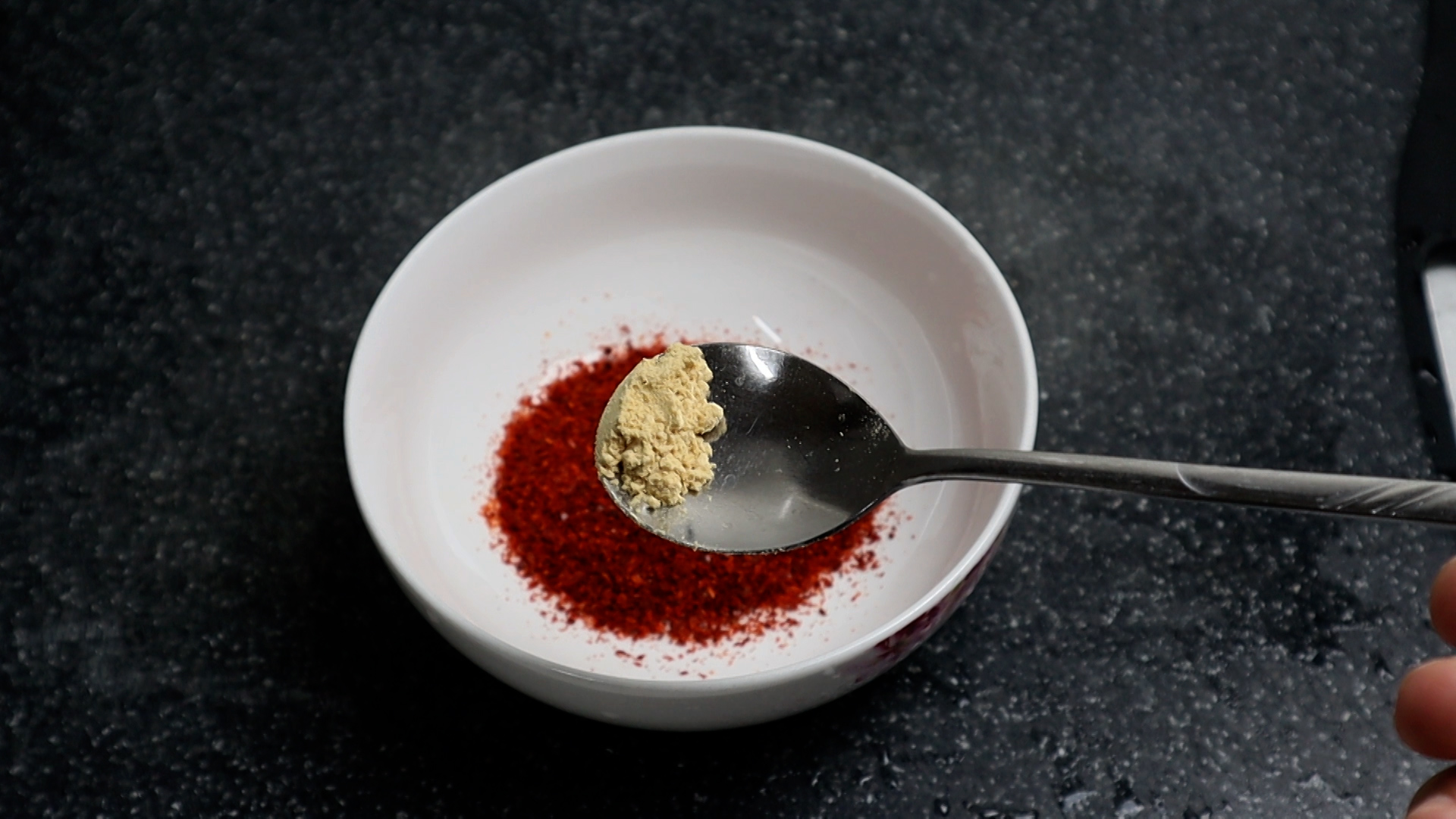 2. 생강가루와 진간장을 넣어주세요. 생강가루는 마트 밀가루 코너 주변 찾아 보시면 분명히 있습니다! 간장을 가열 할거라 진간장을 사용해주세요.