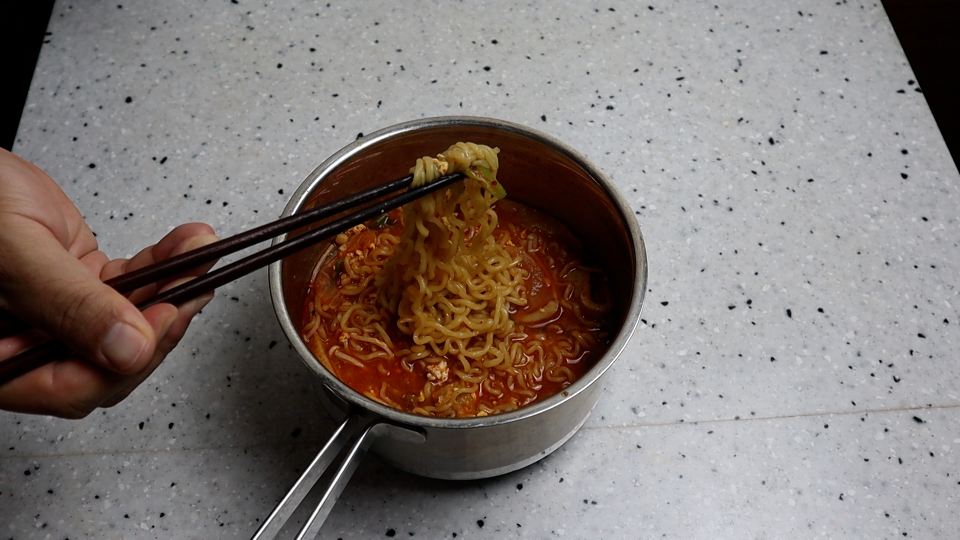 13. 끓이는 동안 면을 들었다 놨다 들었다 놨다 하는것도 마찬가지!! 여러명에게 테스트 해봐도 차이를 모르더라고요 ㅎㅎ 계란 넣으실 분들은 노른자 터트릴거면 완성 1분 30초 전 안터트릴거면 2분전에 계란을 넣어주세요.