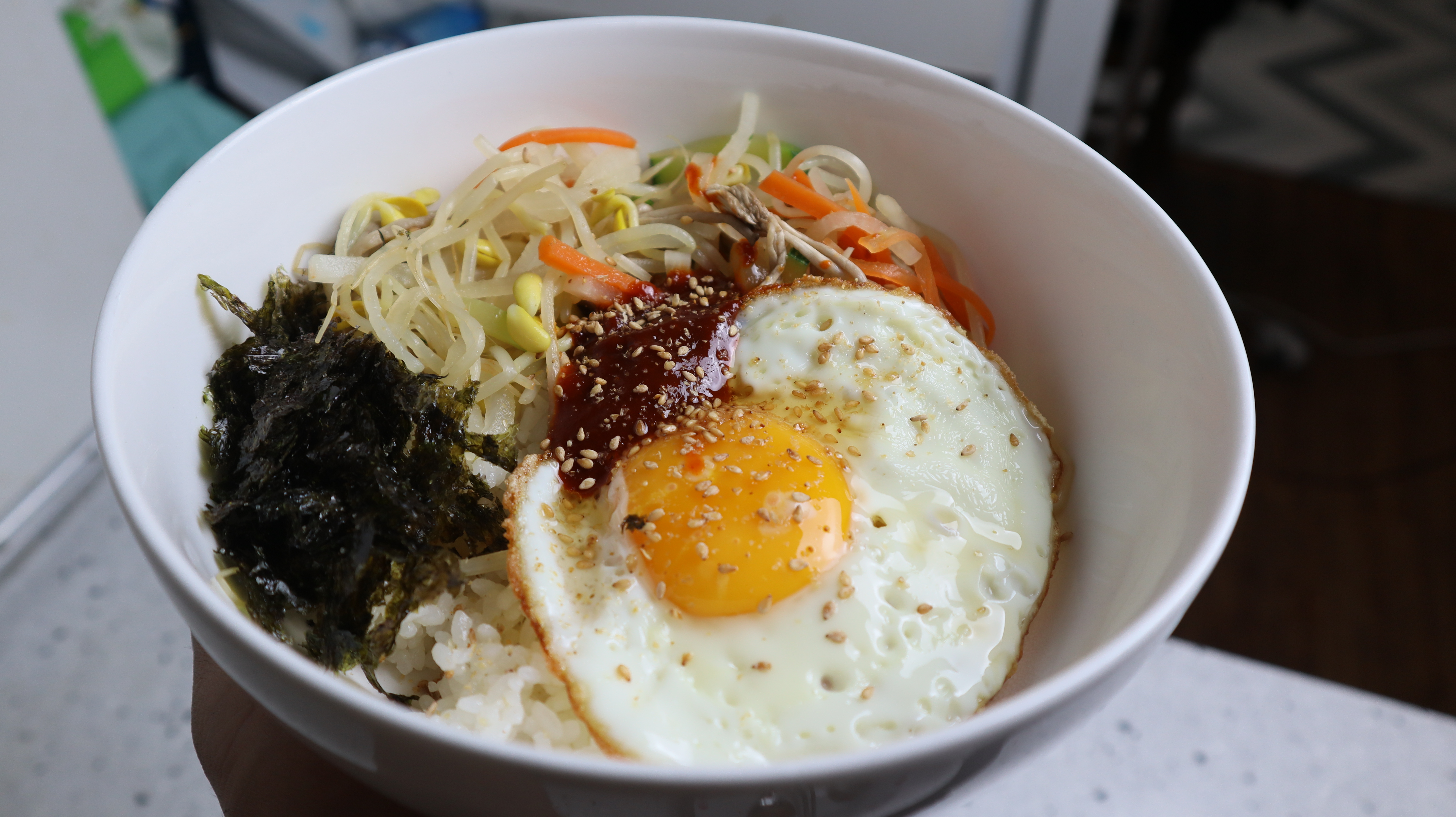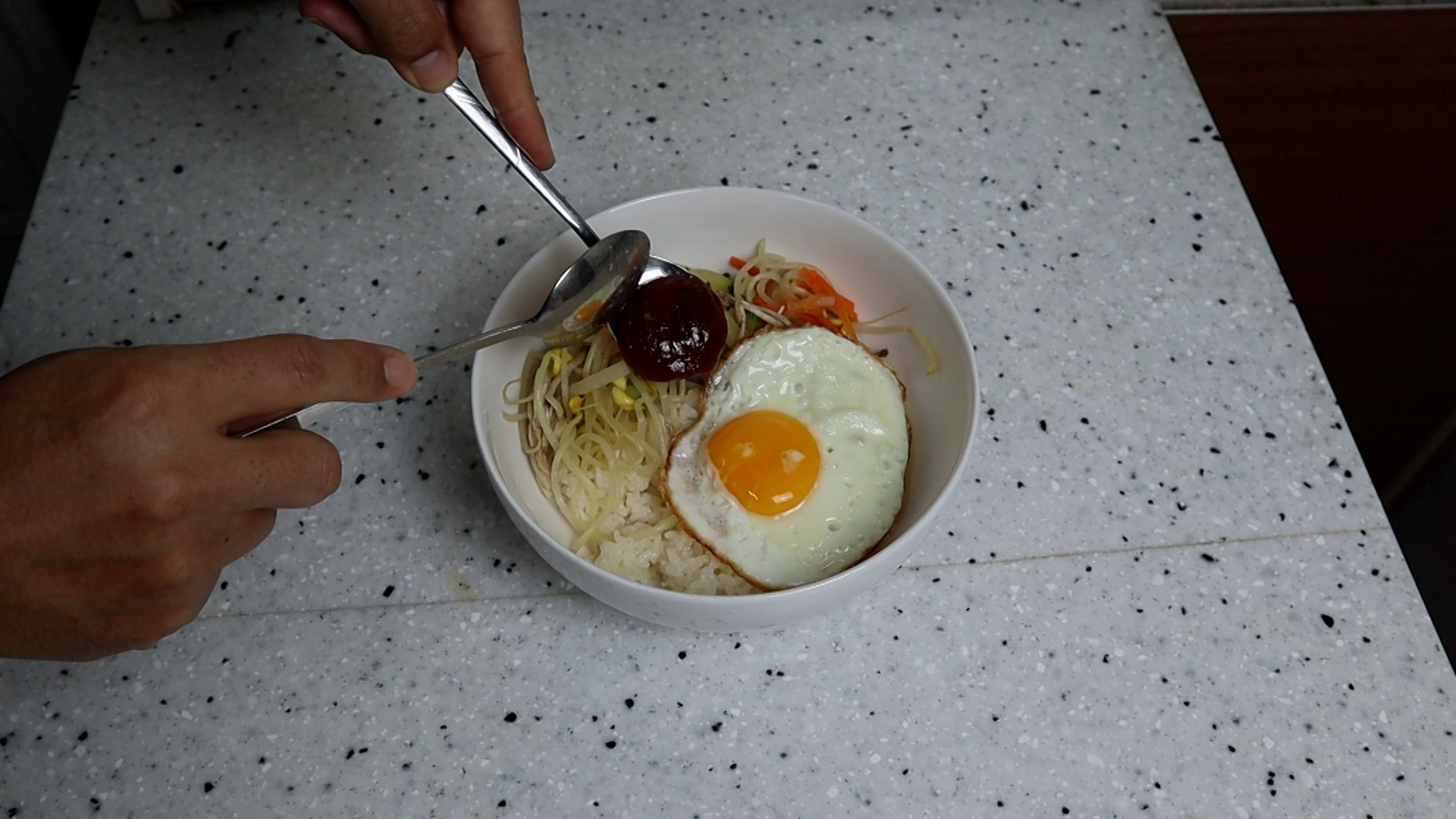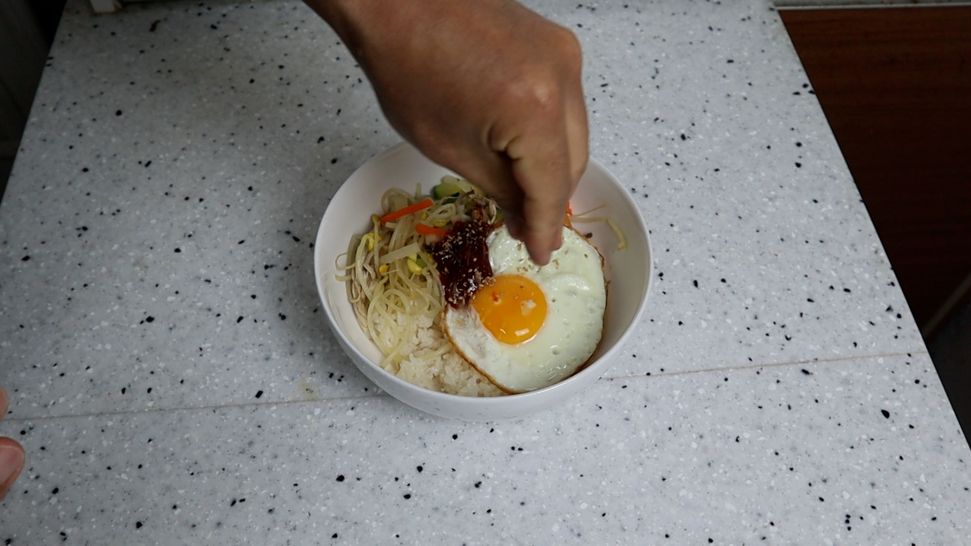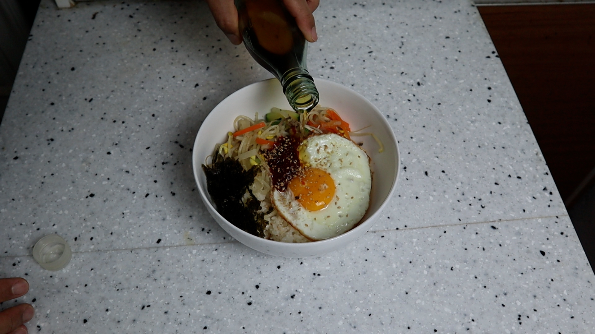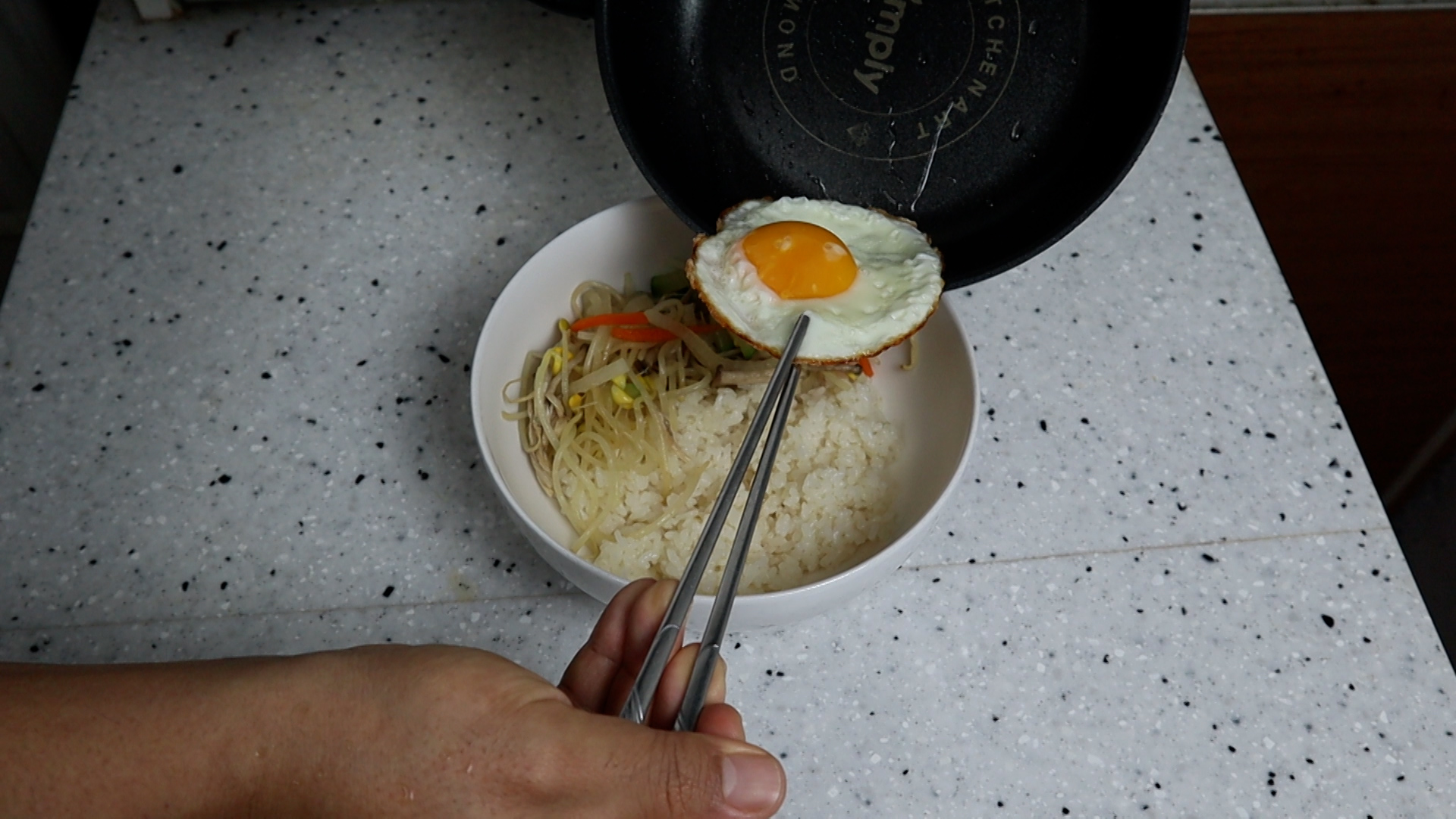 12. 밥 1공기 퍼서 나물 절반을 올리고 계란은 기호에 따라 구워 올려주세요.