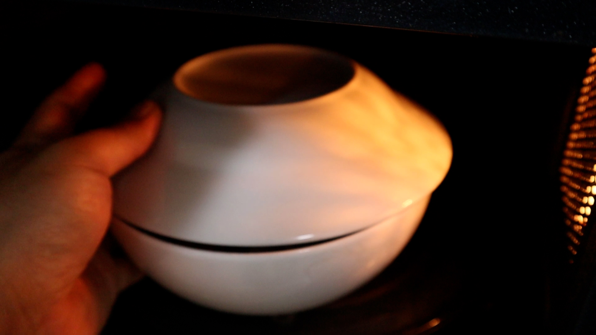8. 4분후 용기가 뜨거우니 수건 같은걸로 잡아 빼주세요. 접시 사용시 접시 끝에서 뜨거운 물이 타고 흐를수 있으니 주의하시거나 전자렌지 4분 돌린 다음 5분 정도 가만 뒀다 꺼내시는것도 좋습니다.