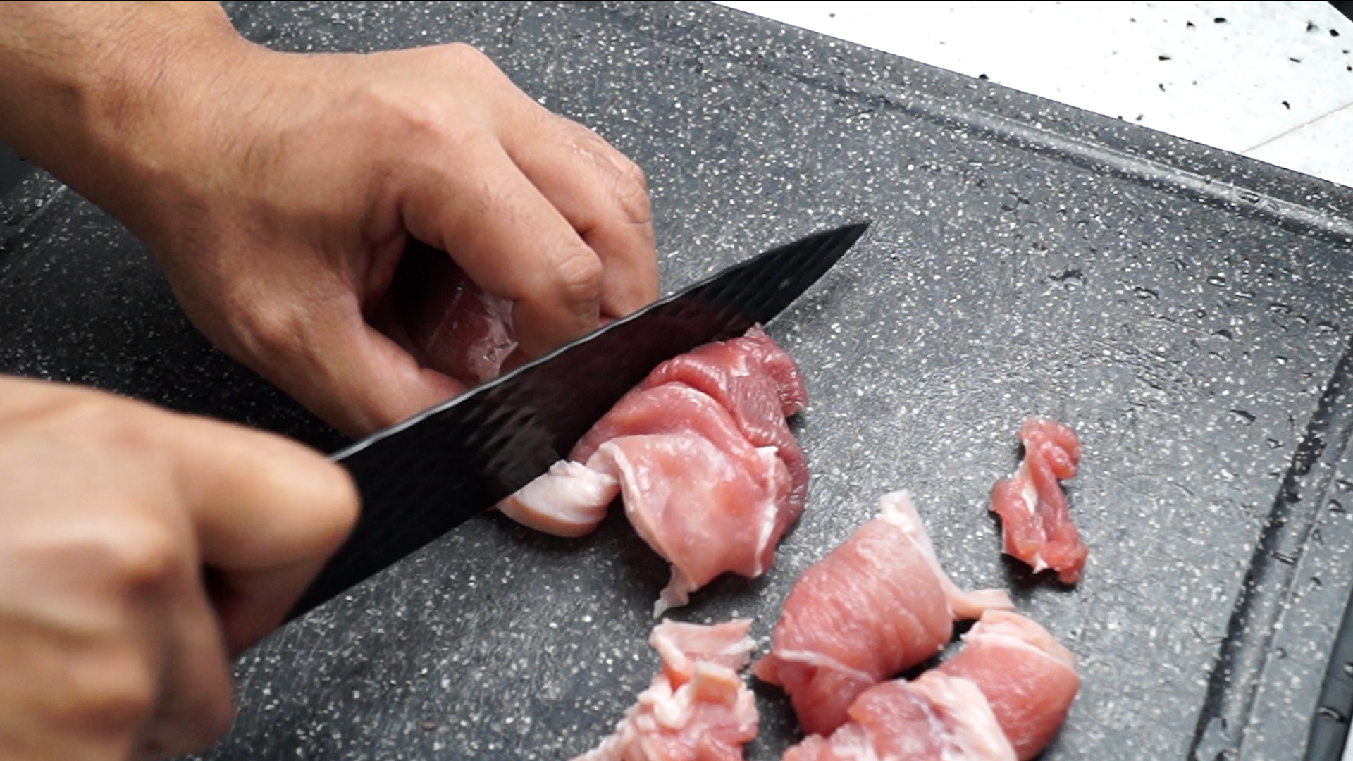 4. 돼지고기는 삼겹살이나 앞다리살로 기름이 적당히 있는 돼지고기를 준비해서 먹기좋은 크기로 썰어주세요. 제육볶음용으로 썰려나오는걸 사시면 편합니다.