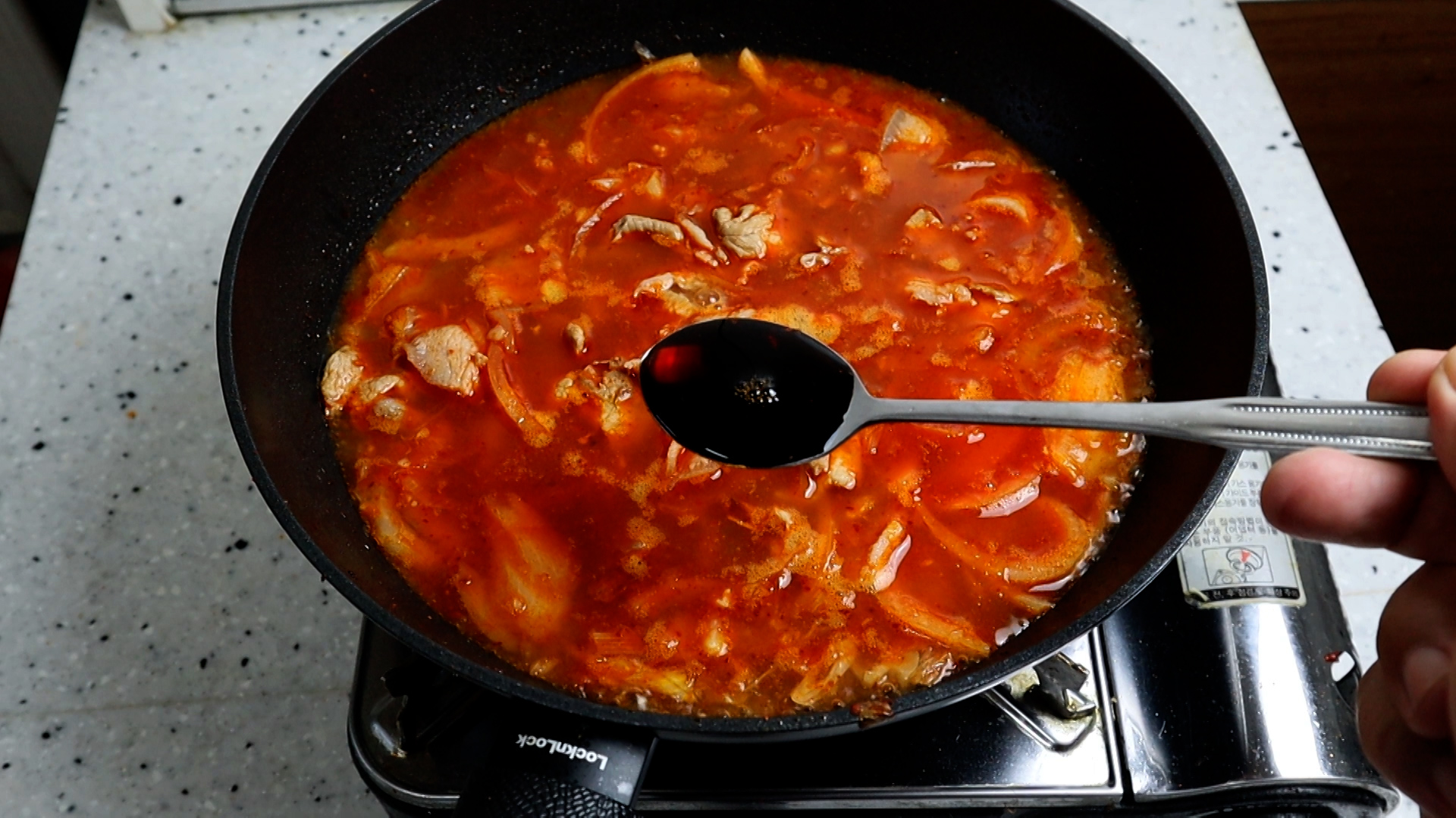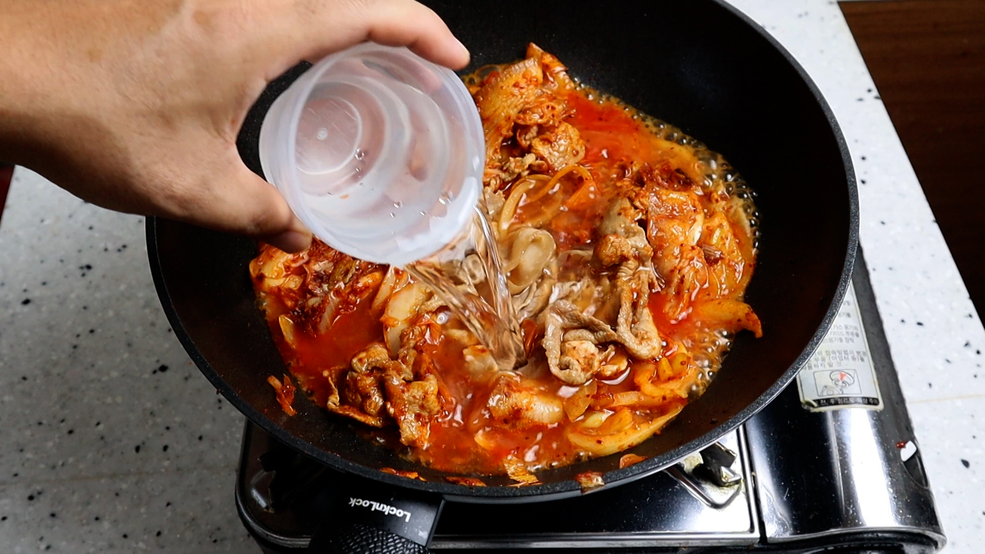 11. 물을 부어주세요. 물 대신 멸치육수를 사용하시는것도 좋습니다.