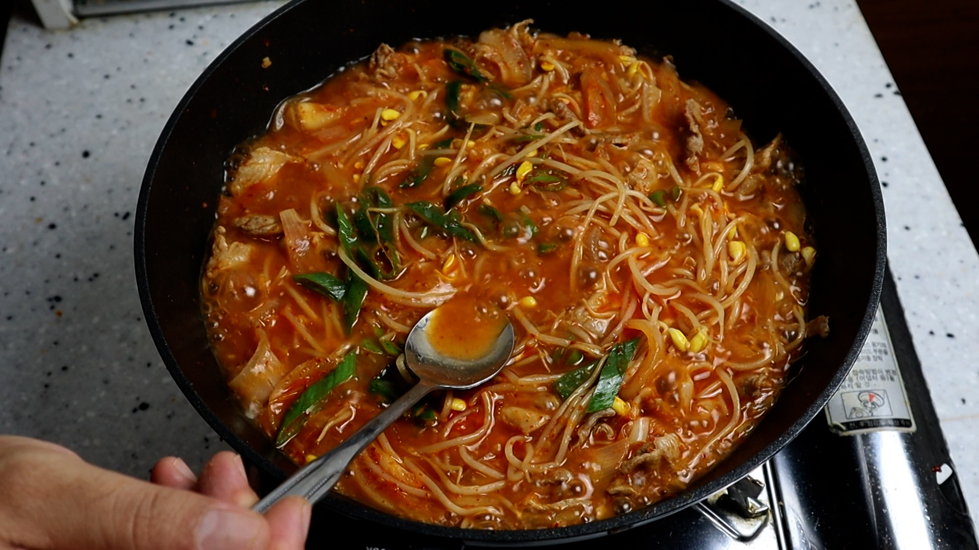 찌개국물이 더욱 시원하고 묵직해 지는 조리법으로 맛있는 콩나물 돼지고기찌개 끓였는데 금방 다 동나 버렸어요.