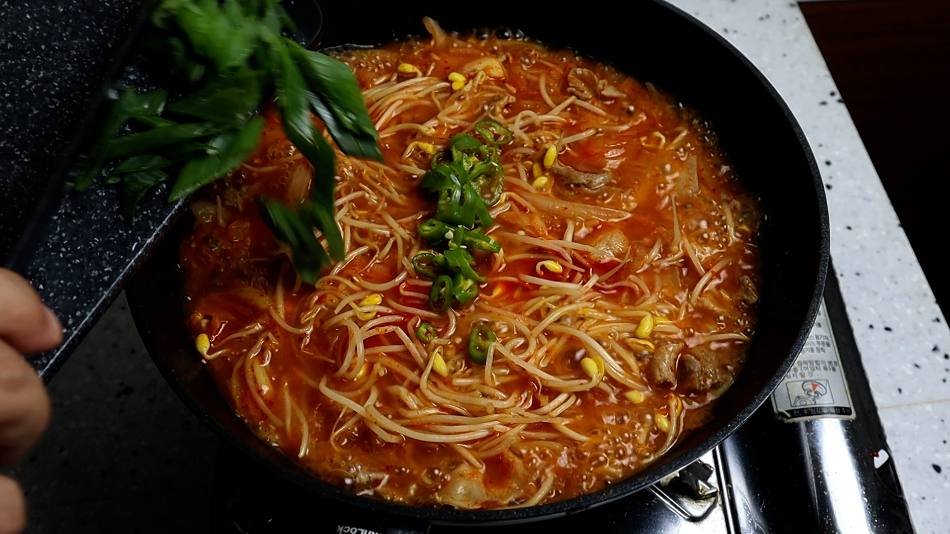 16. 콩나물 머리가 국물에 폭폭 잠기게 눌러가면서 끓여주세요.