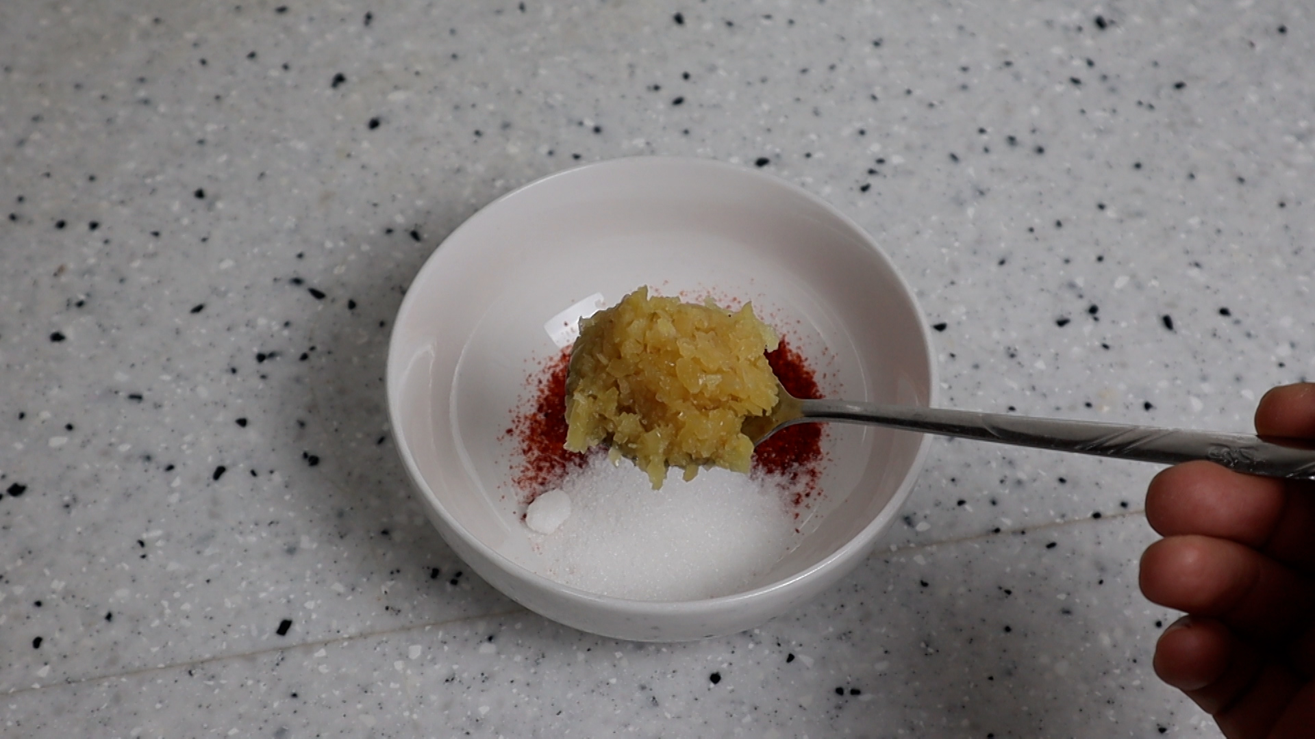 3. 설탕은 살짝 깍아넣고 마늘은 간마늘을 넣어주세요.