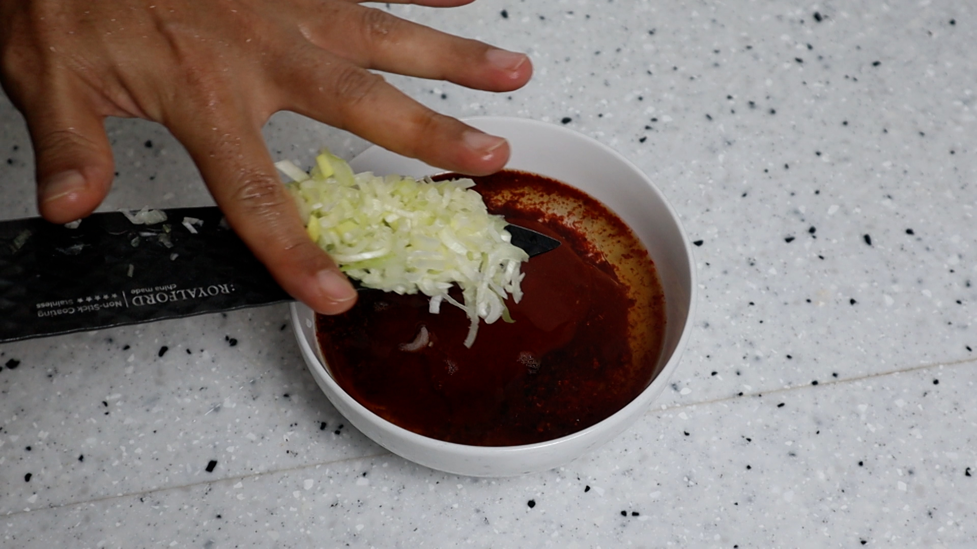 1. 대파는 흰대위주로 얇게 썰어주시고 가볍게 몇번만 다져주세요.