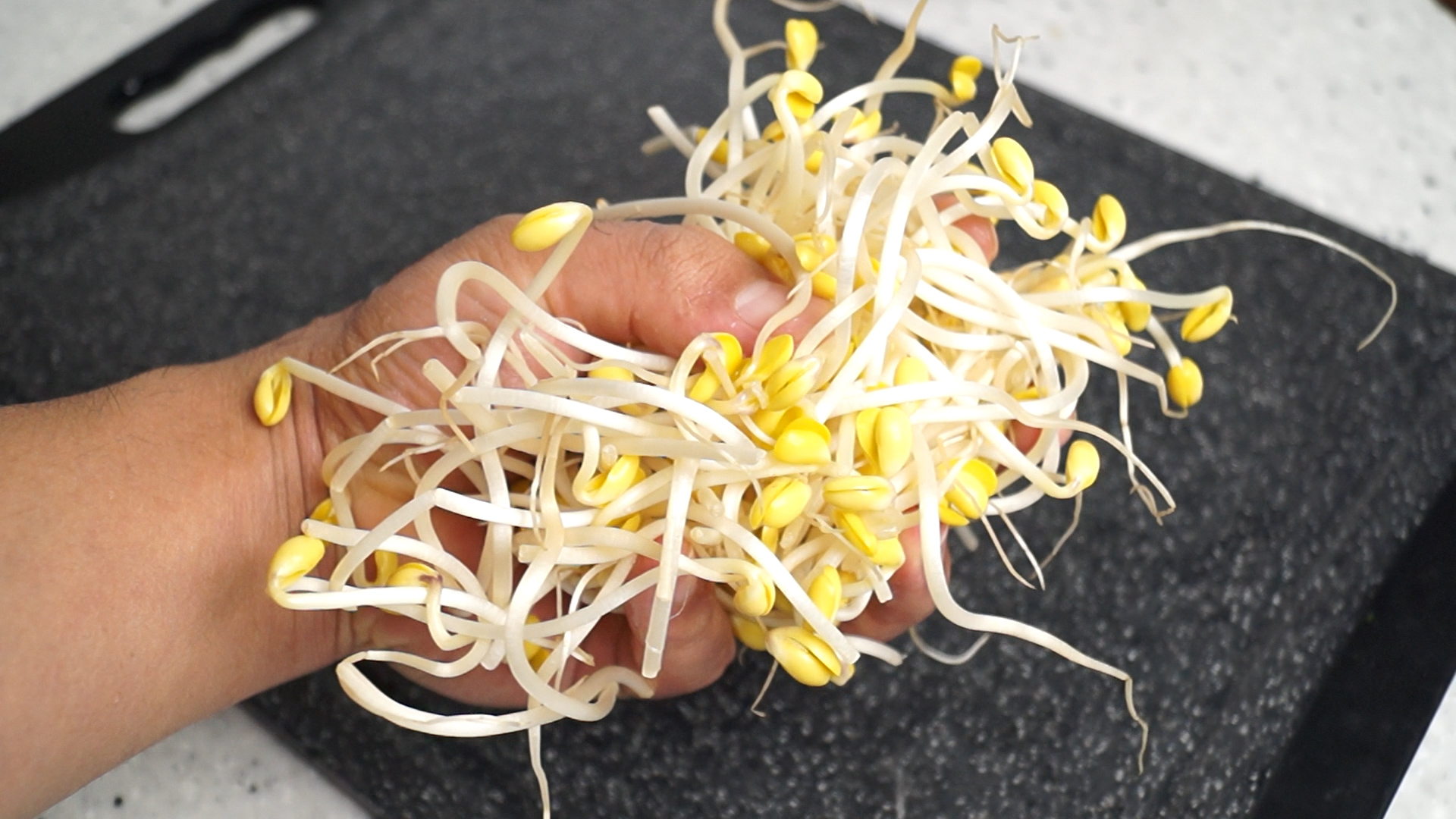 5. 콩나물은 주먹으로 넘치게 한주먹 쥐어주면 대략 100g 정도가 되더라고요. 콩나물이 좀 들어가면 씹는 식감에 아삭함이 더해져 먹는맛이 훨씬 좋아진답니다.