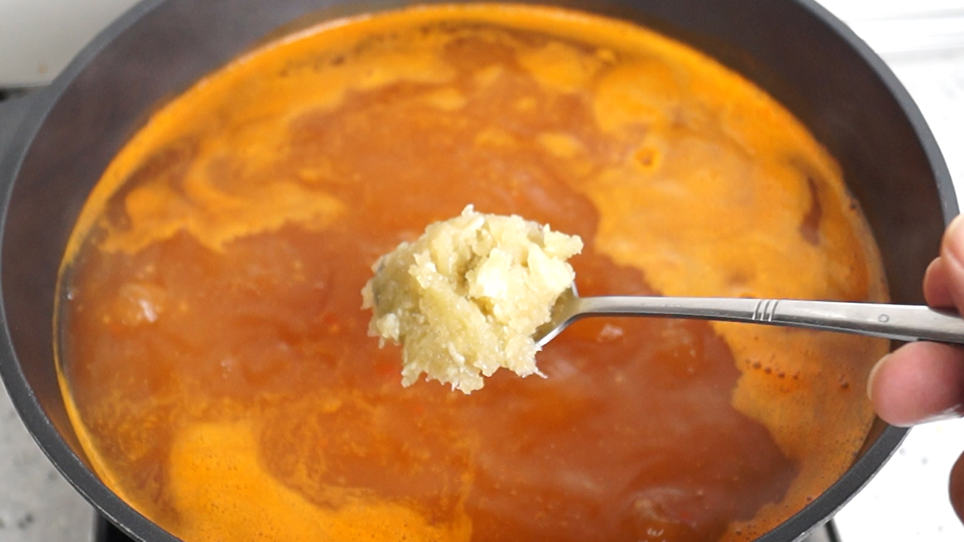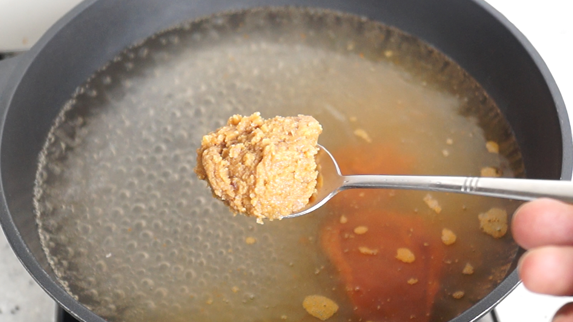 7. 된장을 넣어수 국물에 깊고 진한맛을 보태보세요. 고추장만 사용하는것도다 확실히 국물이 묵직하고 진해집니다.