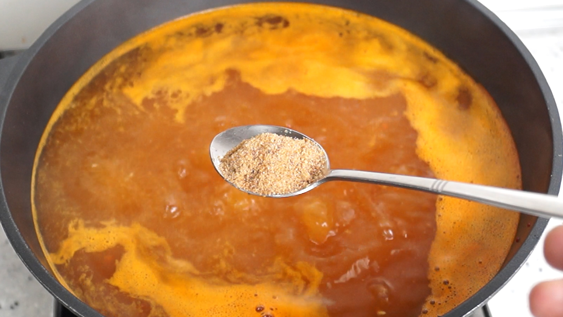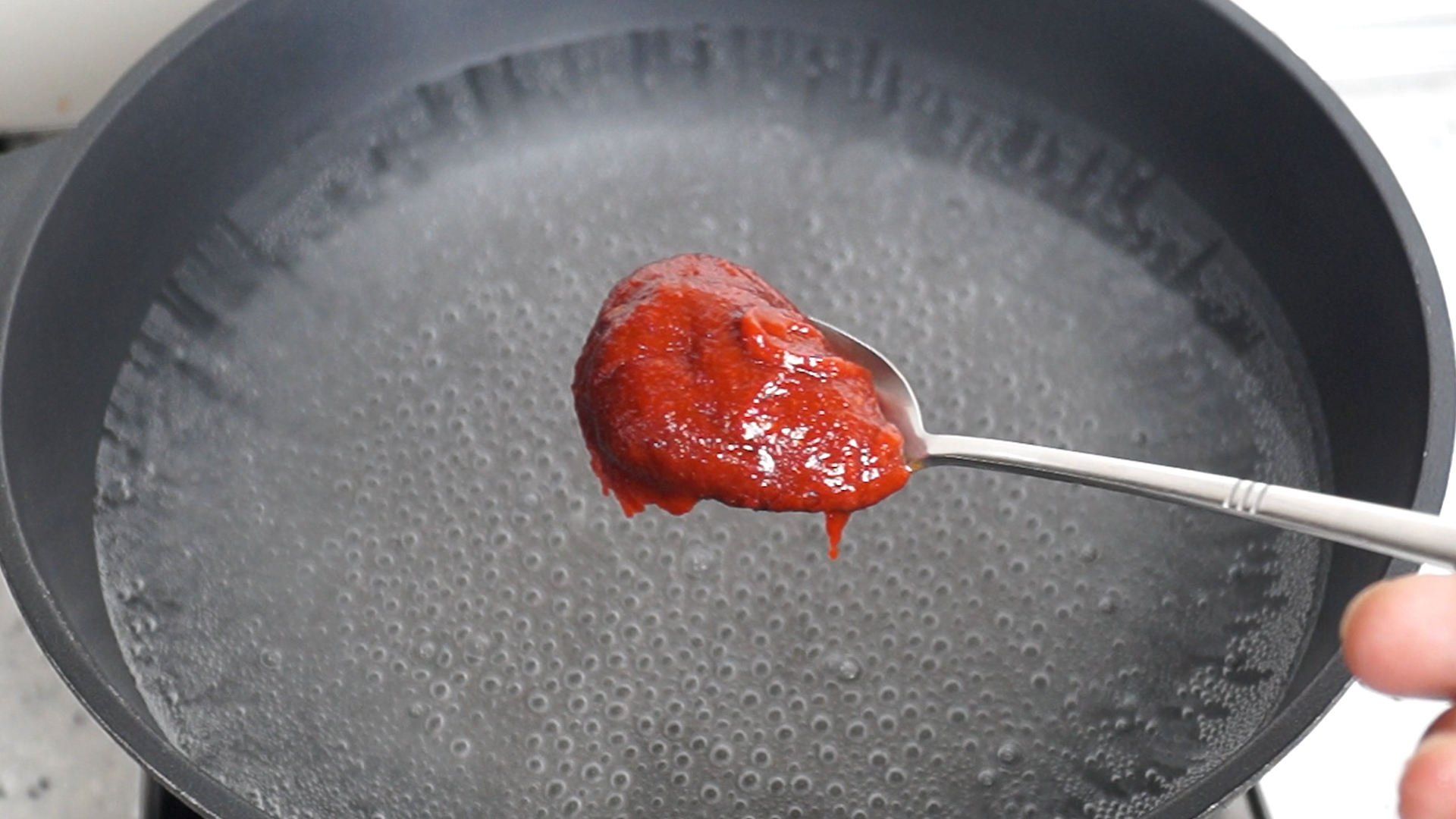 6. 물 8컵 1.6리터를 펄펄 끓여서 양념란에 재료를 분량껏 넣어주세요. 고추장은 집고추장 보다 시판고추장 사용을 추천드립니다.
