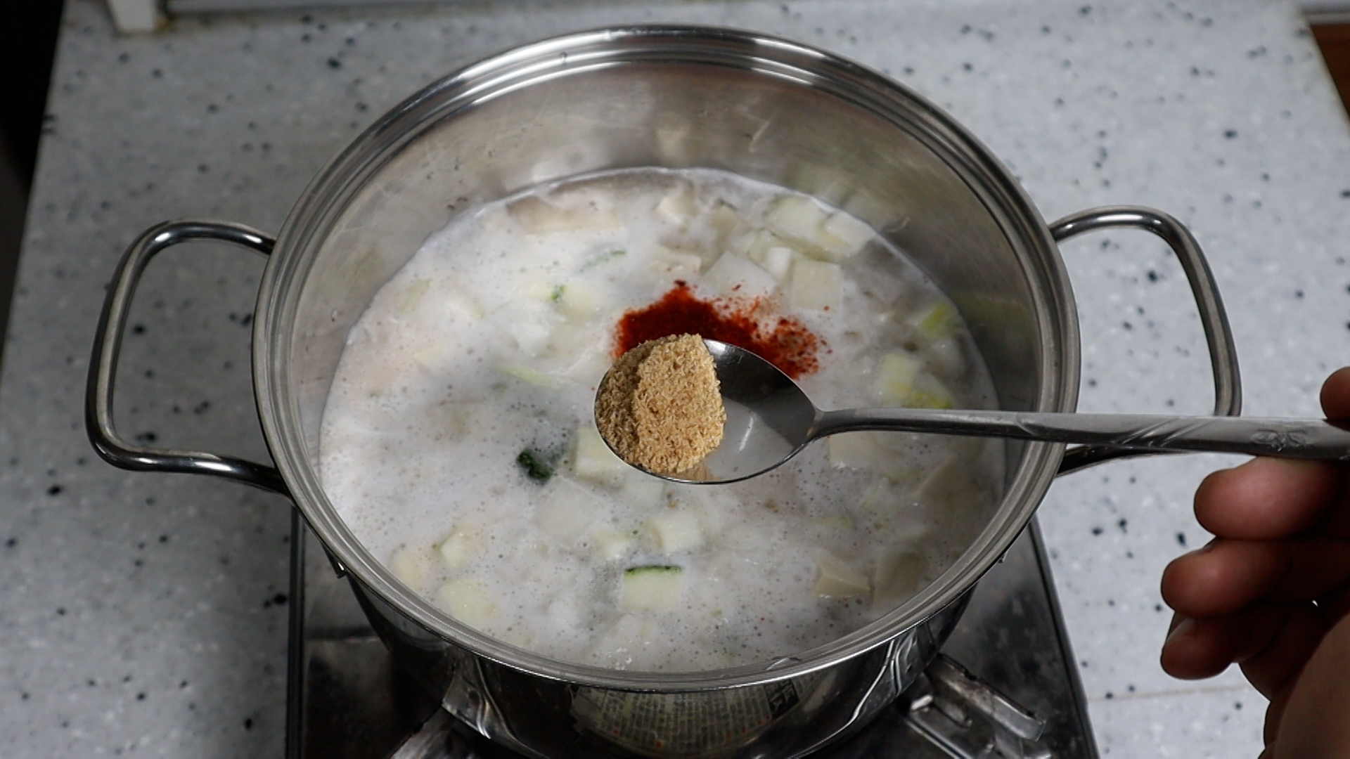 11. 소고기 다시다와 혼다시를 분량껏 넣어주세요. 멸치다시마육수를 사용하셨다면 생략하셔도 되고 혼다시가 없으시면 소고기다시다로 동량 대체하시면 됩니다.