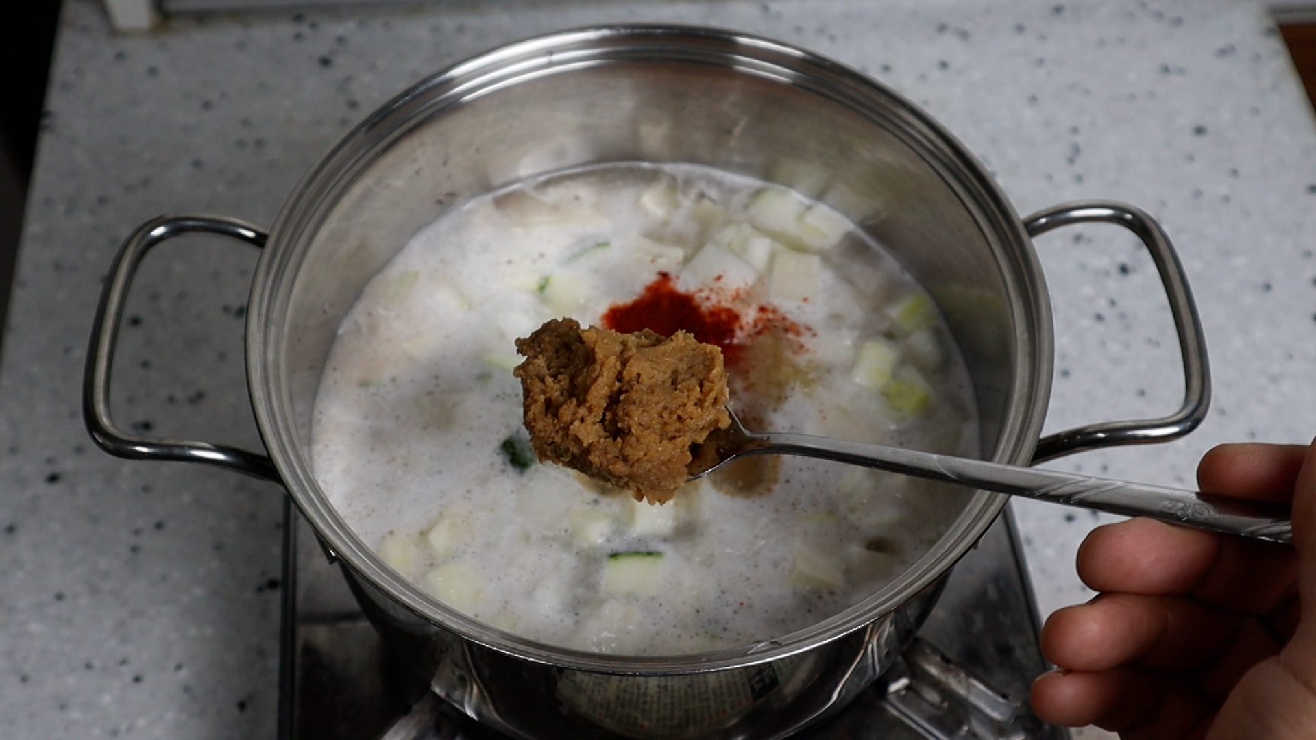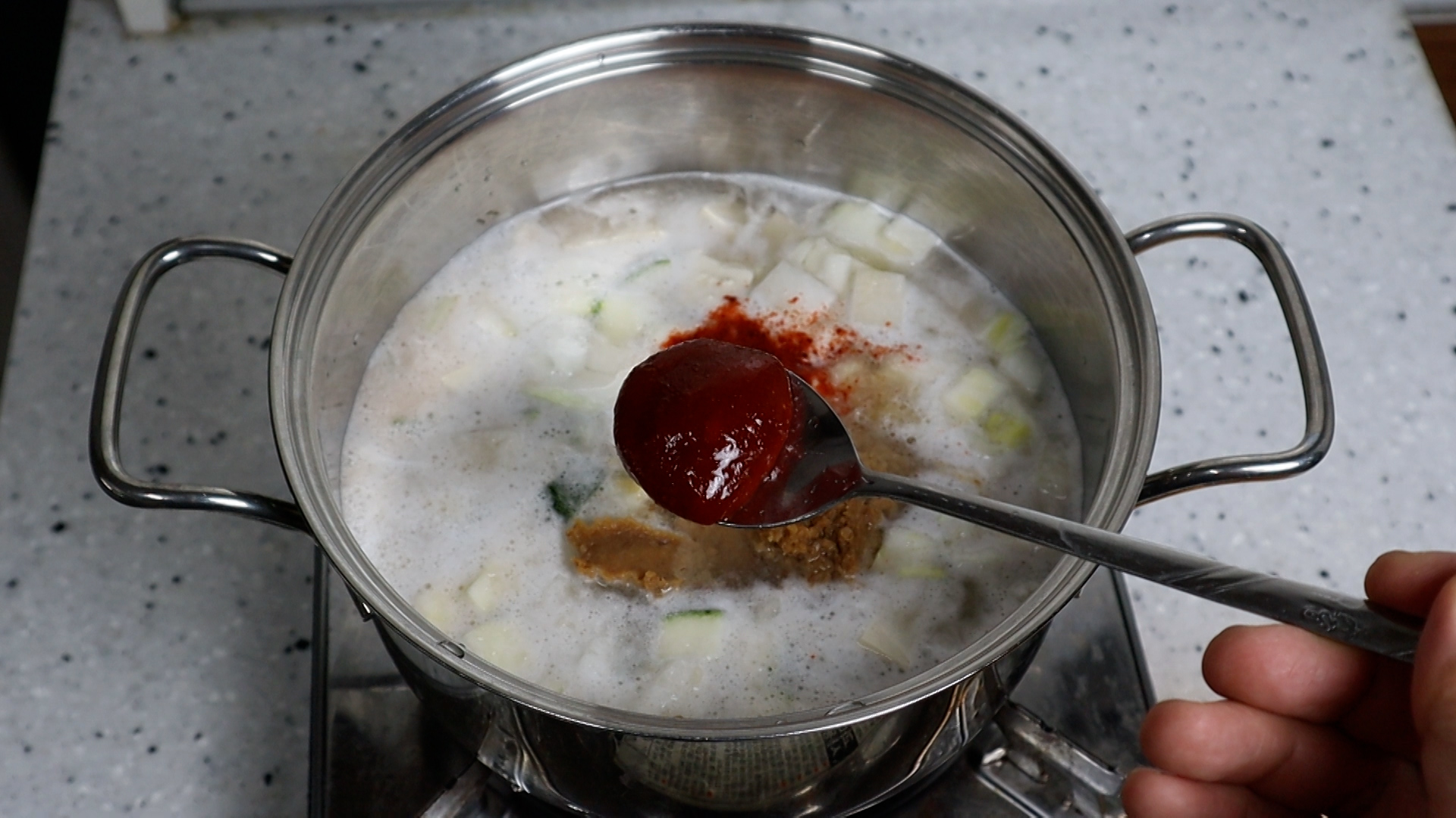 14. 된장과 고추장을 넣어주세요. 된장은 시판 재래된장 아무거나 사용하시면 됩니다.