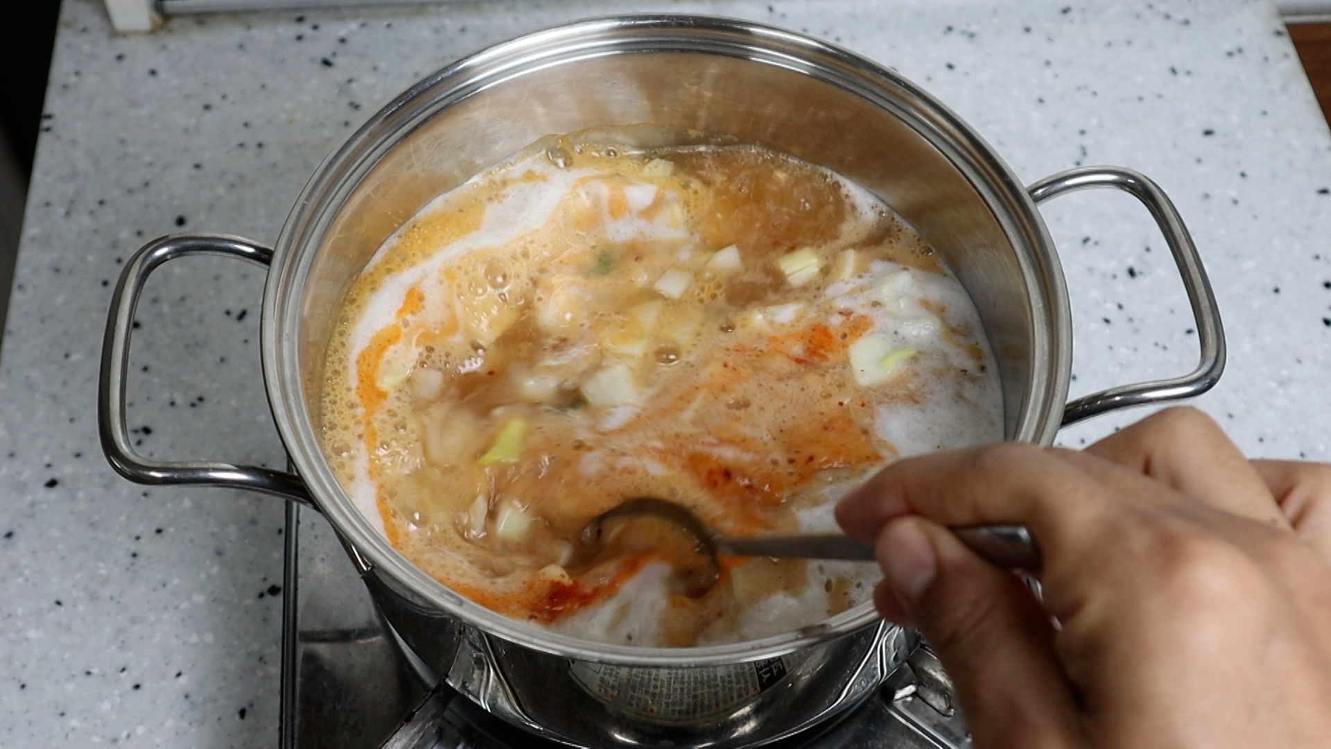 19. 추가 재료를 넣은 다음에 2분 정도를 더 끓인 다음 맛을 보시고 좀더 진하게 드시고 싶으시면 끓이는 시간을 늘여주세요.