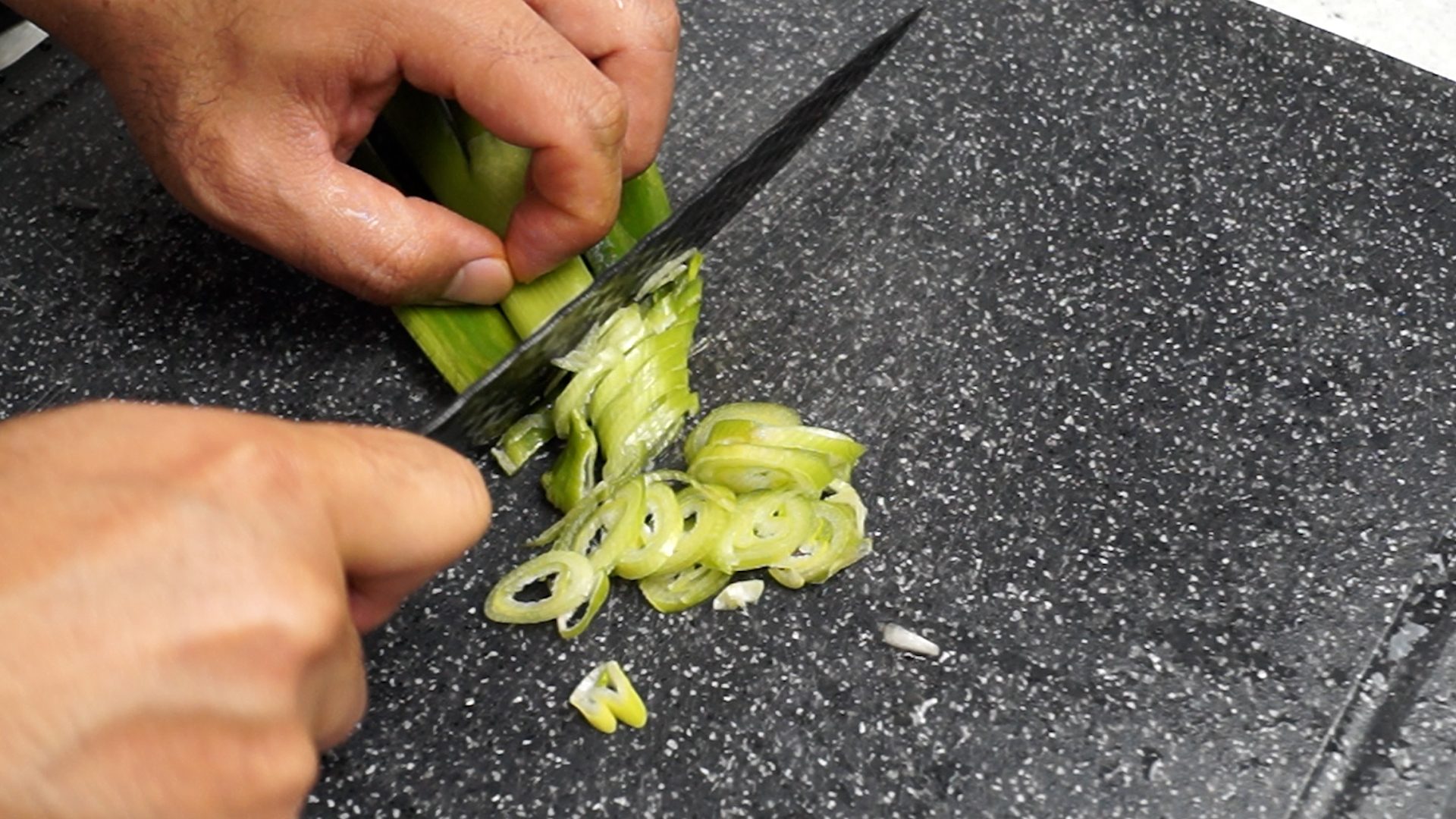 3. 대파는 흰대 위주로 2큰술 정도 분량을 썰어주세요.