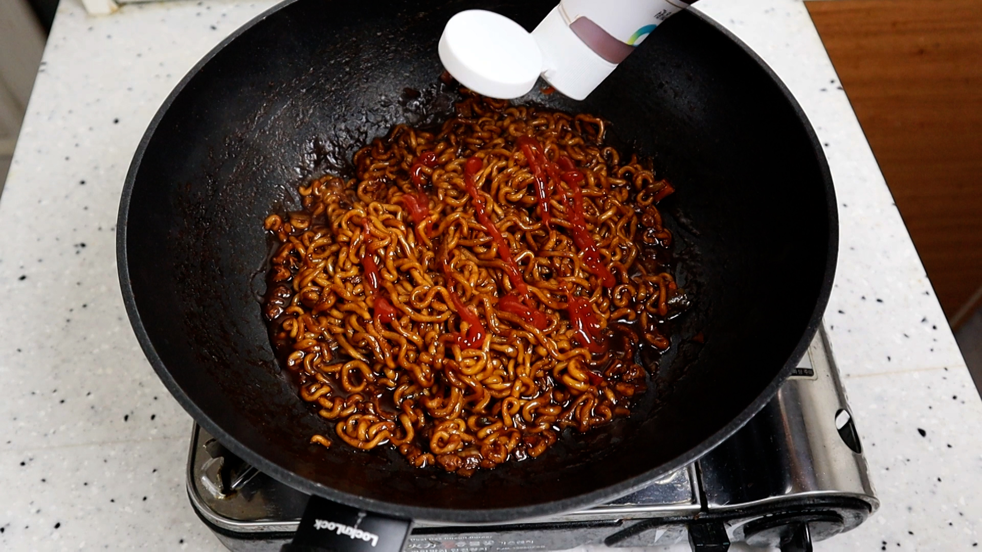 9. 누구나 까먹어본 경험이 있는 유성스프를 잊지말고 넣고 골고루 섞어주면 일반적인 짜장라면이 되죠~
