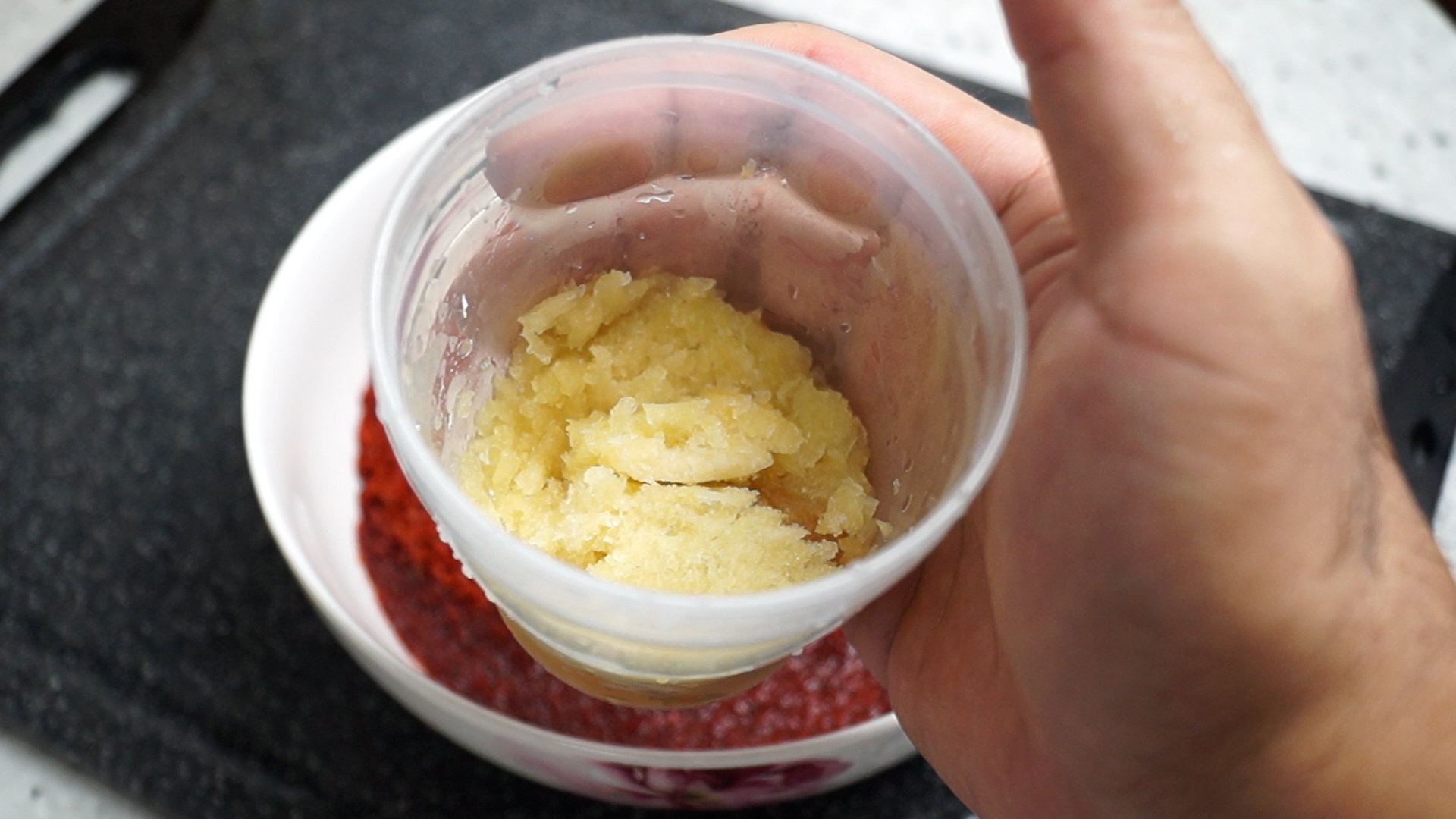 8. 생강가루 사용시 1스푼을 넣어주시고 간생강 사용시 마늘의 1/3정도 되는 부피의 간생강을 넣어주세요.