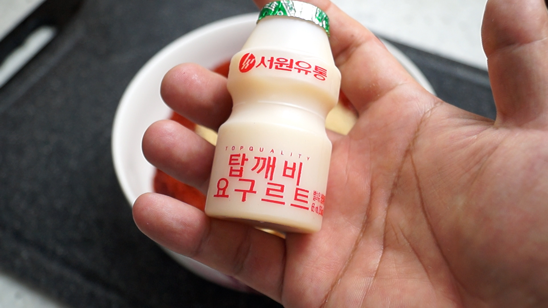12. 요구르트 1병을 침전물 안 남게 흔들어준 다음 부어주세요. 요구르트 업체마다 다 다르지만 작은거 1병이 대략 60~70g 정도 되니까 참고하세요
