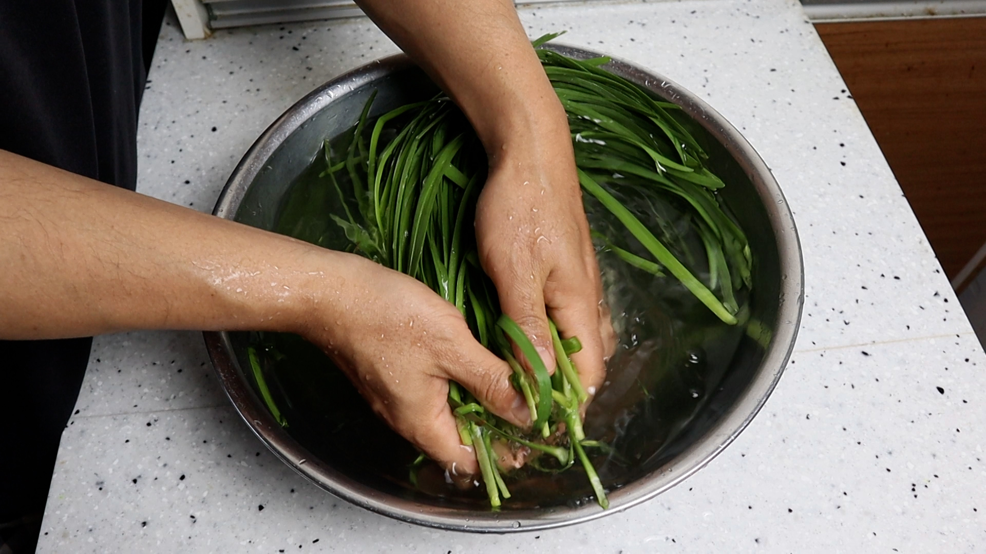 10. 때를 불린 부추는 뽀독뽀독 문지르지 말고 설설설 흩어 가면서 2~3차례 물을 갈아가며 씻어주세요.