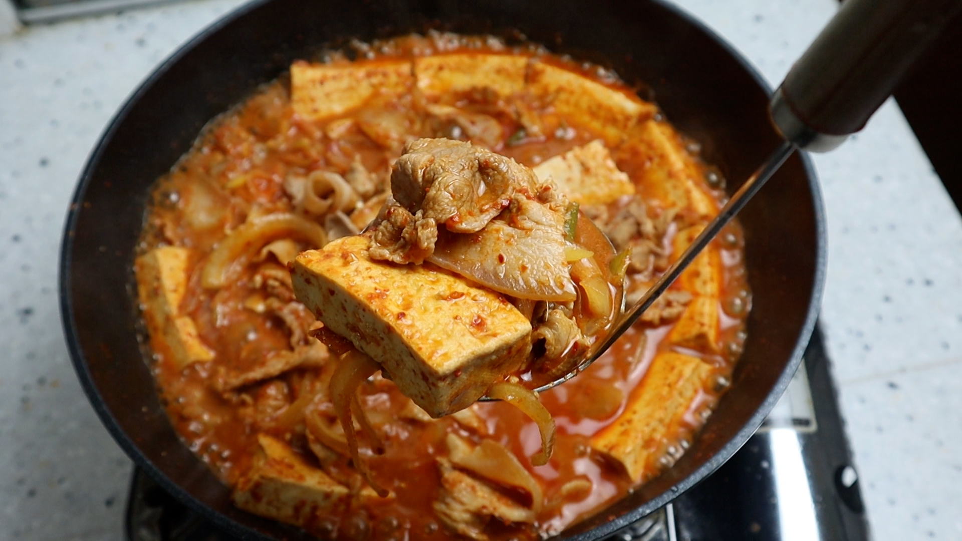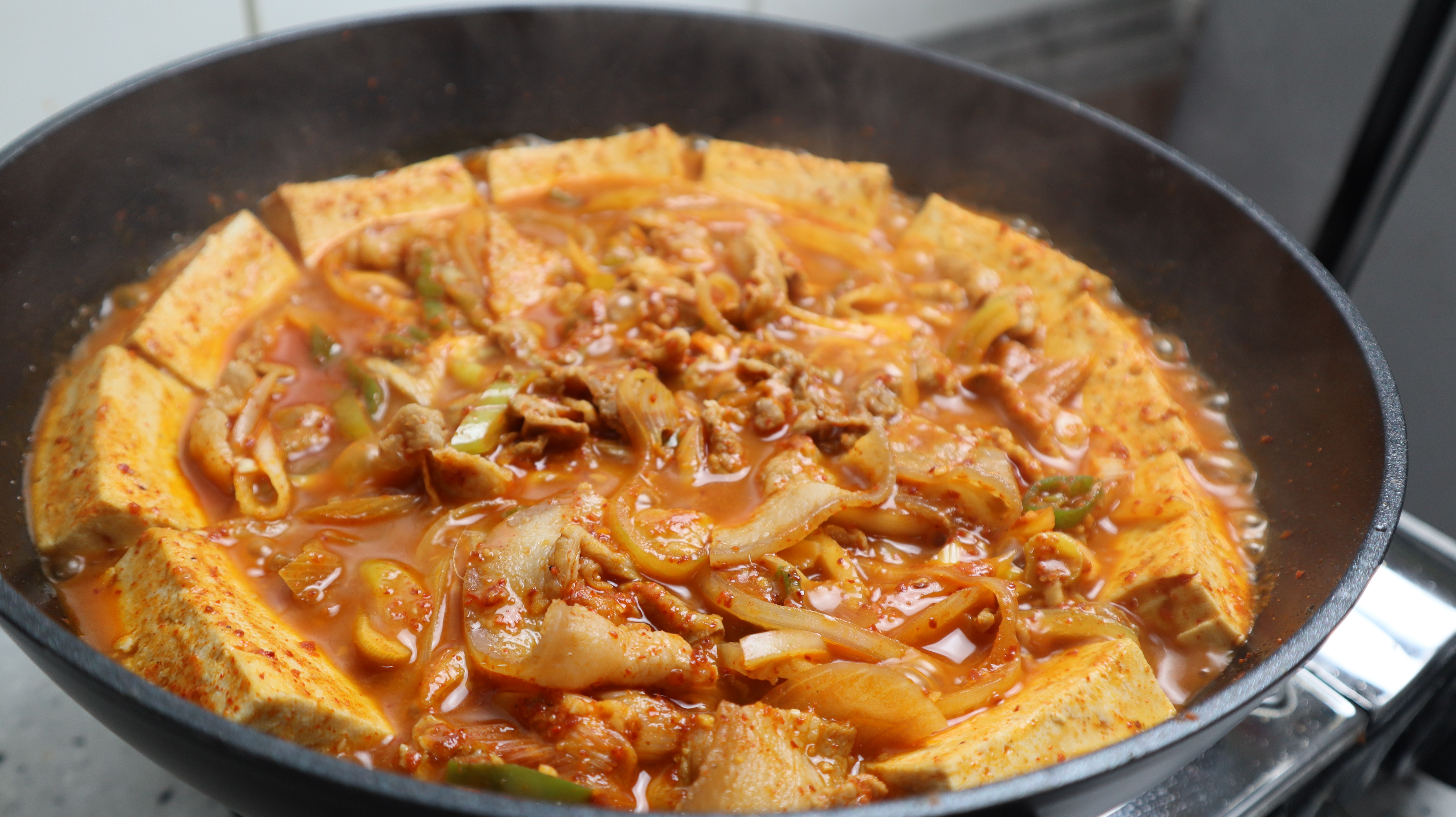 간편하게 후다닥 끓여내도 웬만큼 공을 들인 찌개 만큼 맛있는 돼지고기 두부찌개.