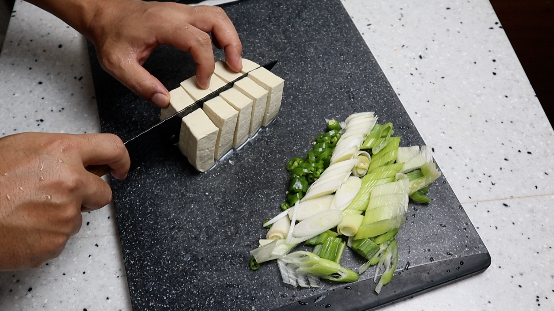 12. 두부 300g 은 두께는 1~1.5cm 크기는 기호에 맞게 썰어주세요.