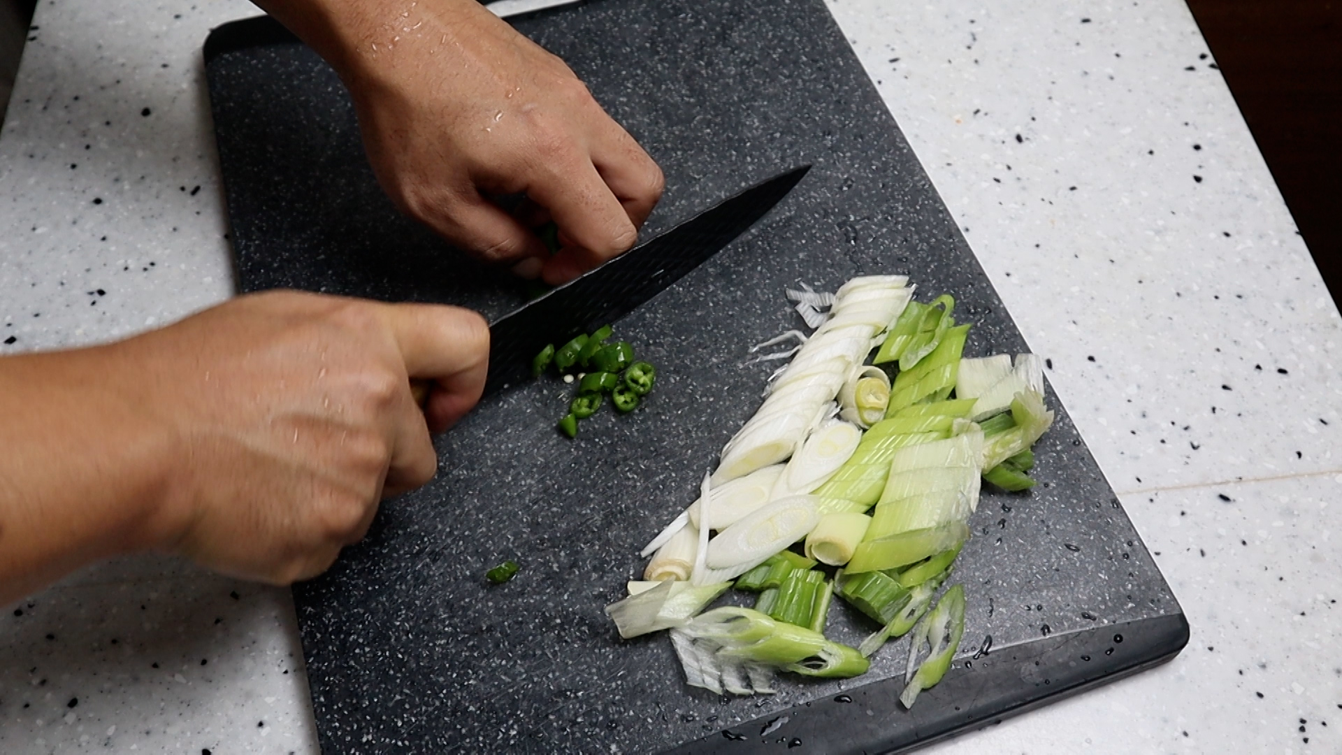 10. 대파는 초록대 흰대를 섞어서 썰어주세요.