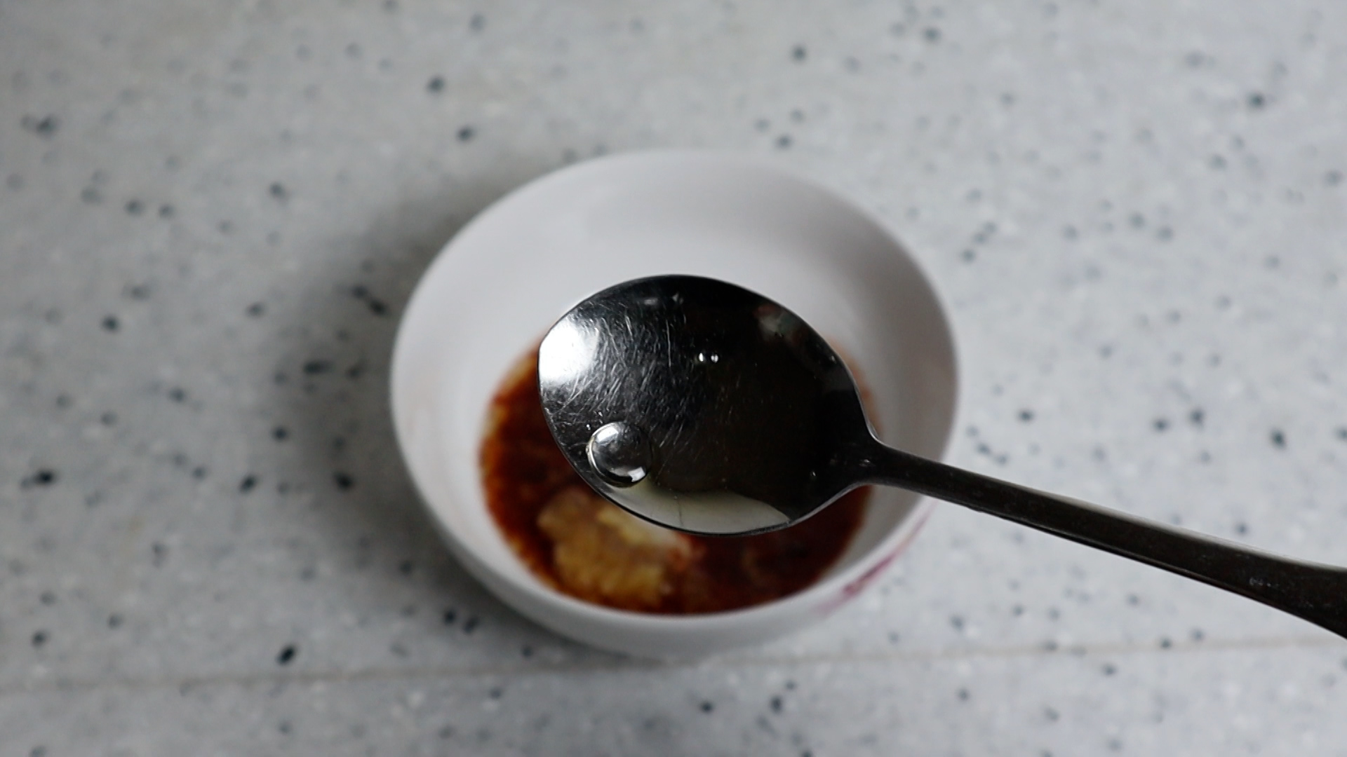 9. 물엿을 부어주세요. 물엿을 넣기전에 참기름을 넣은 숟가락을 사용하시면 물엿이 숟가락에서 깔끔하게 미끄러져 떨어져서 좋답니다!