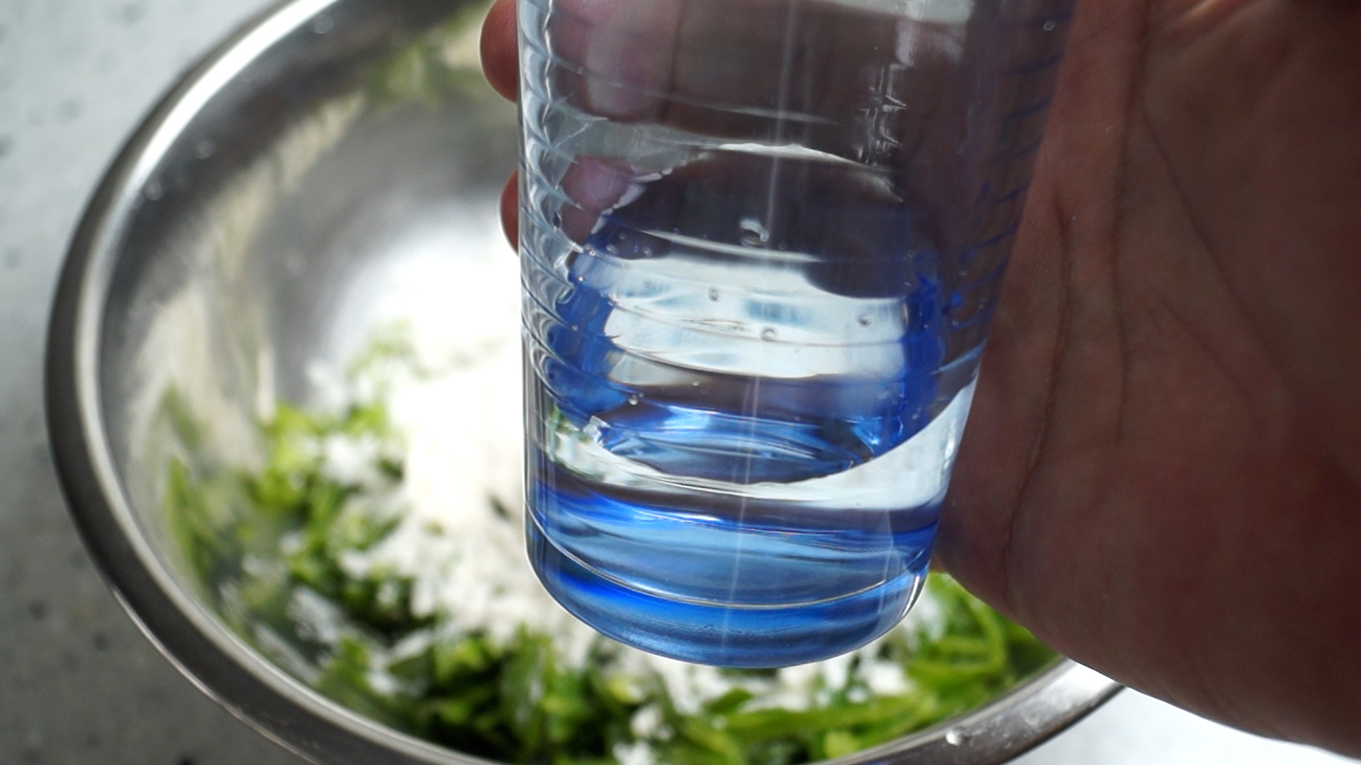 6. 물양은 가루 업체마다 조금씩 다르지만 부침가루 무게의 1.5~1.6배 정도를 넣어줍니다. 그래서 원래는 물을 90cc 정도 넣어야 하지만 오늘은 계란을 1알 넣을거라서 50cc 만 넣었습니다.