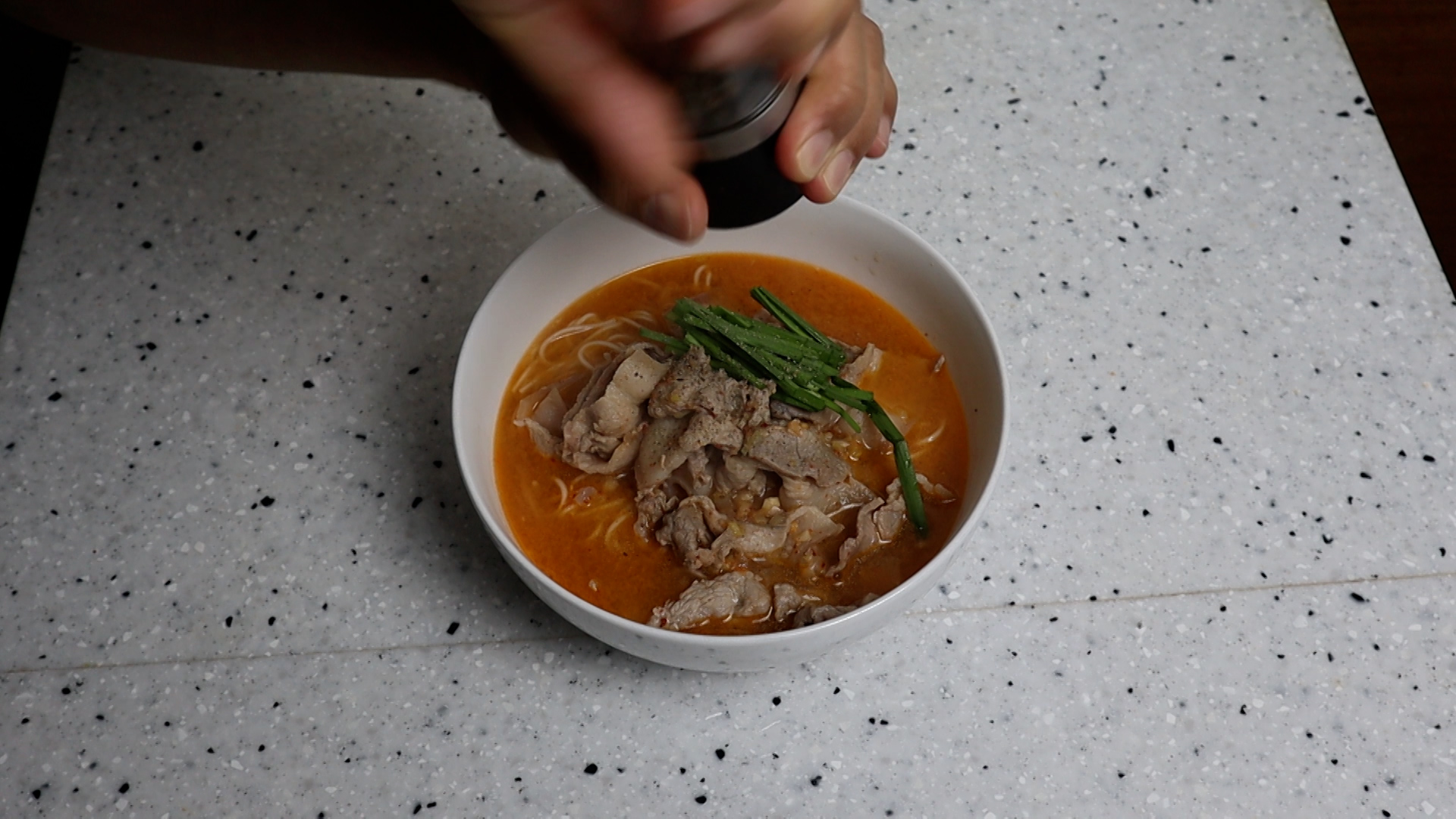 17. 썰어놓은 부추 올리고 후추가루 살짝 뿌려주세요.