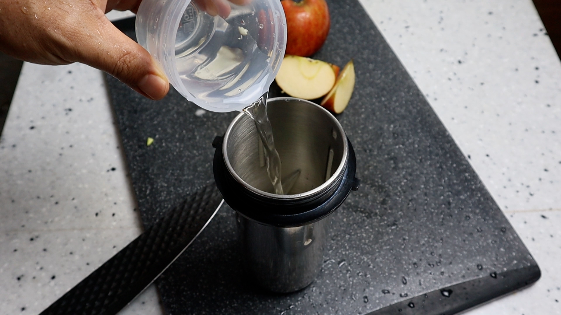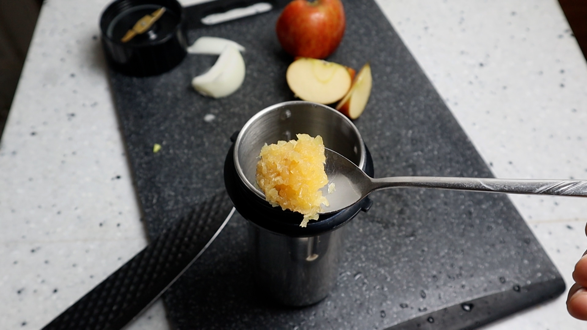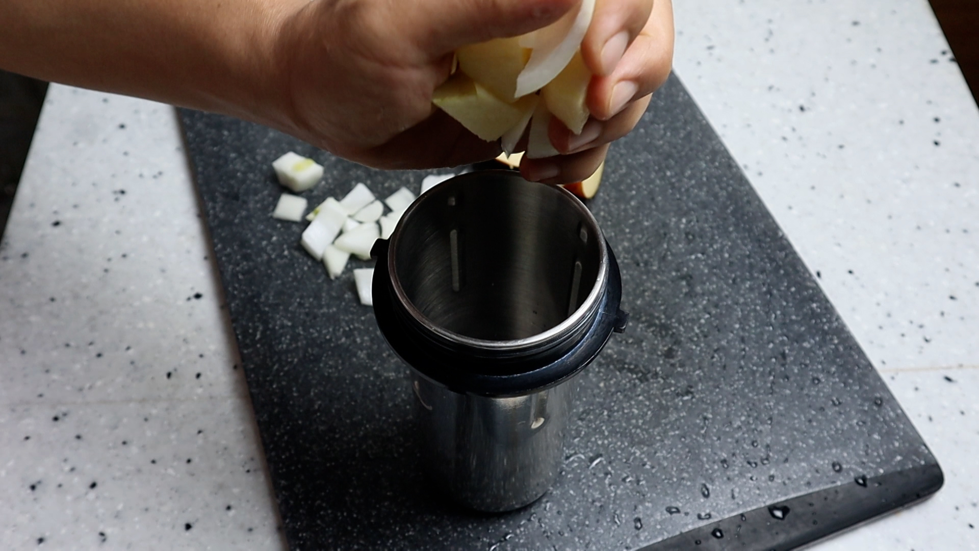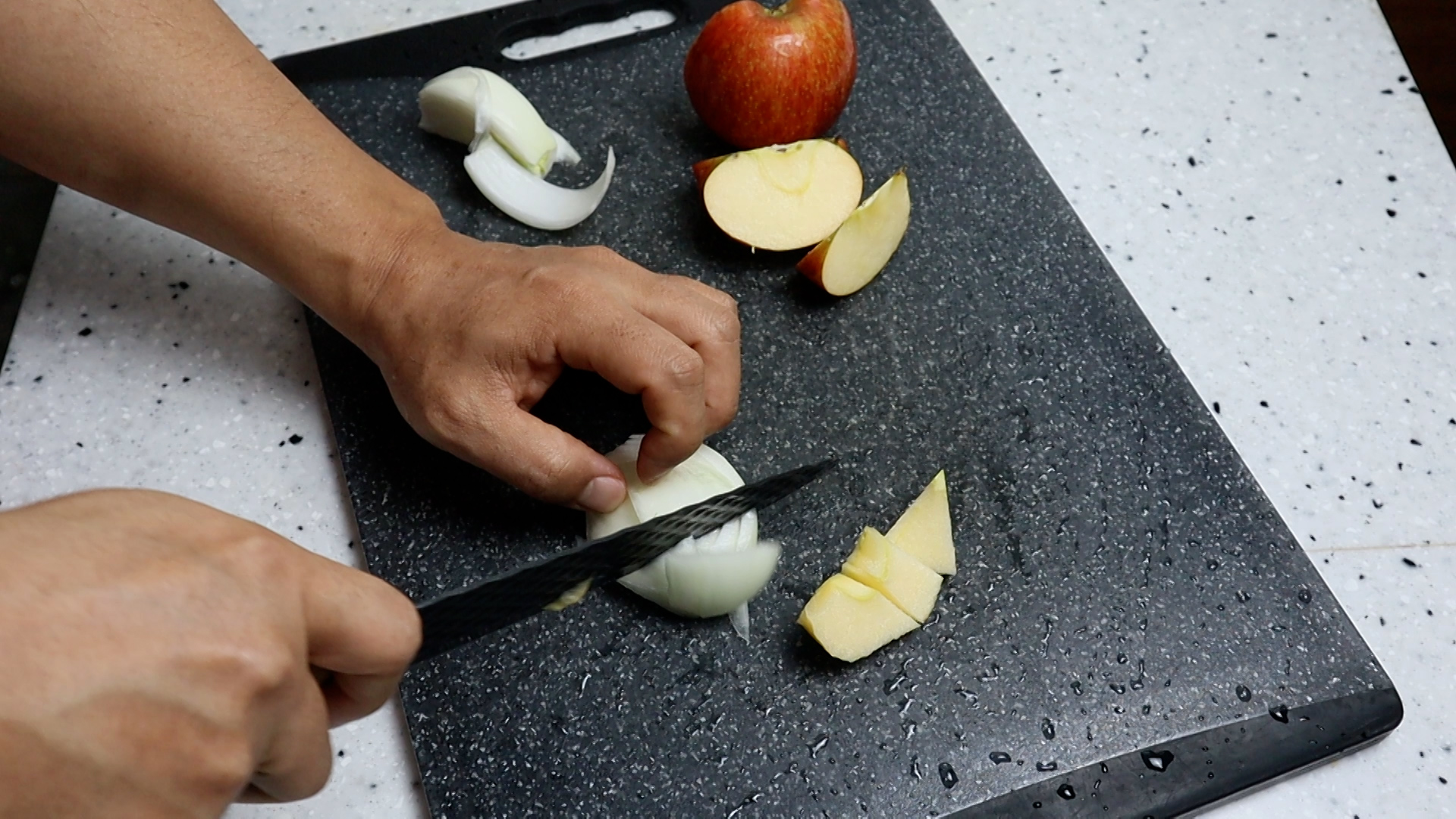 3. 사과와 양파는 대략 3~4cm 크기로 잘라서 믹서기에 넣어주세요.
