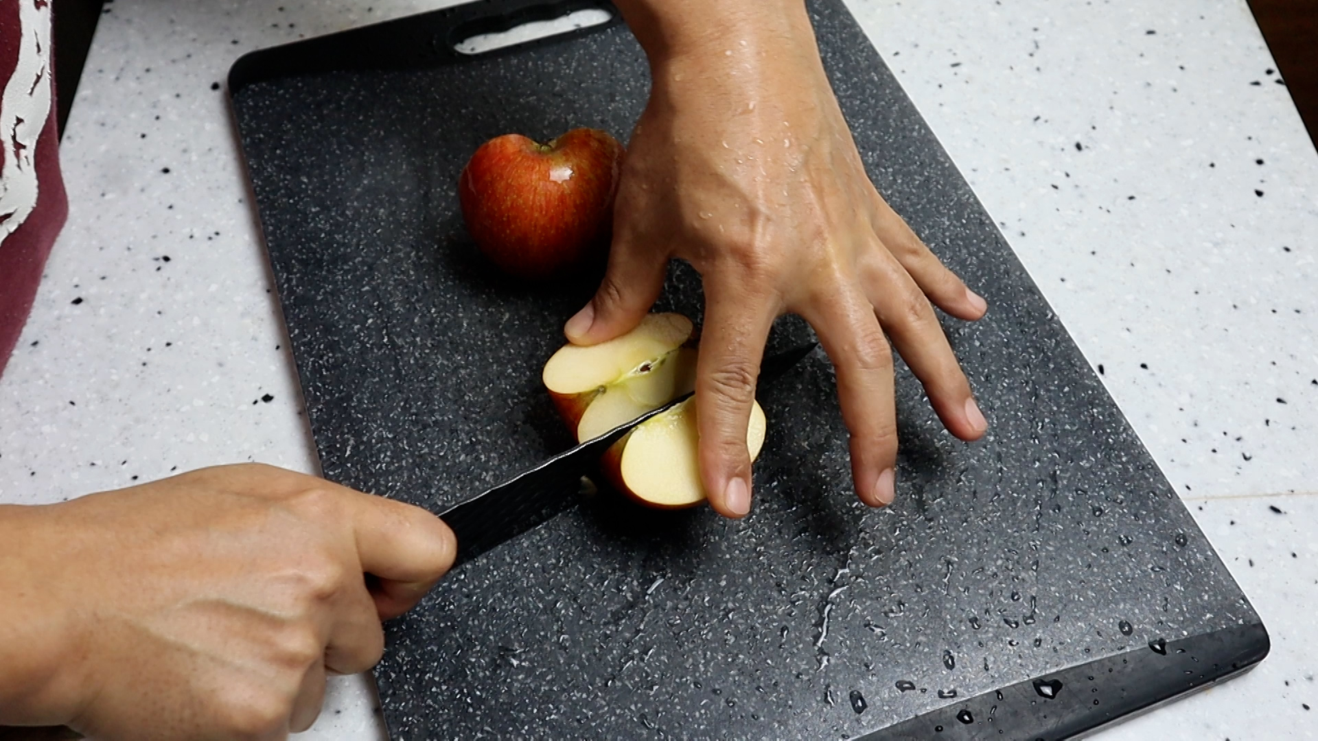 1. 사과를 1/8개만 잘라 껍질을 벗겨서 사용할거에요. 비싼 사과 다 써버리면 ㅎㅎㅎ 만들어 먹는 메리트가 없으니 1/8 쓰고 나머지는 넣어뒀다 간식으로 드세요.
