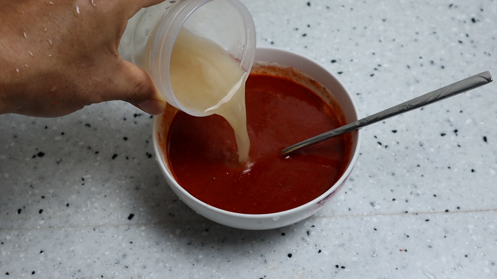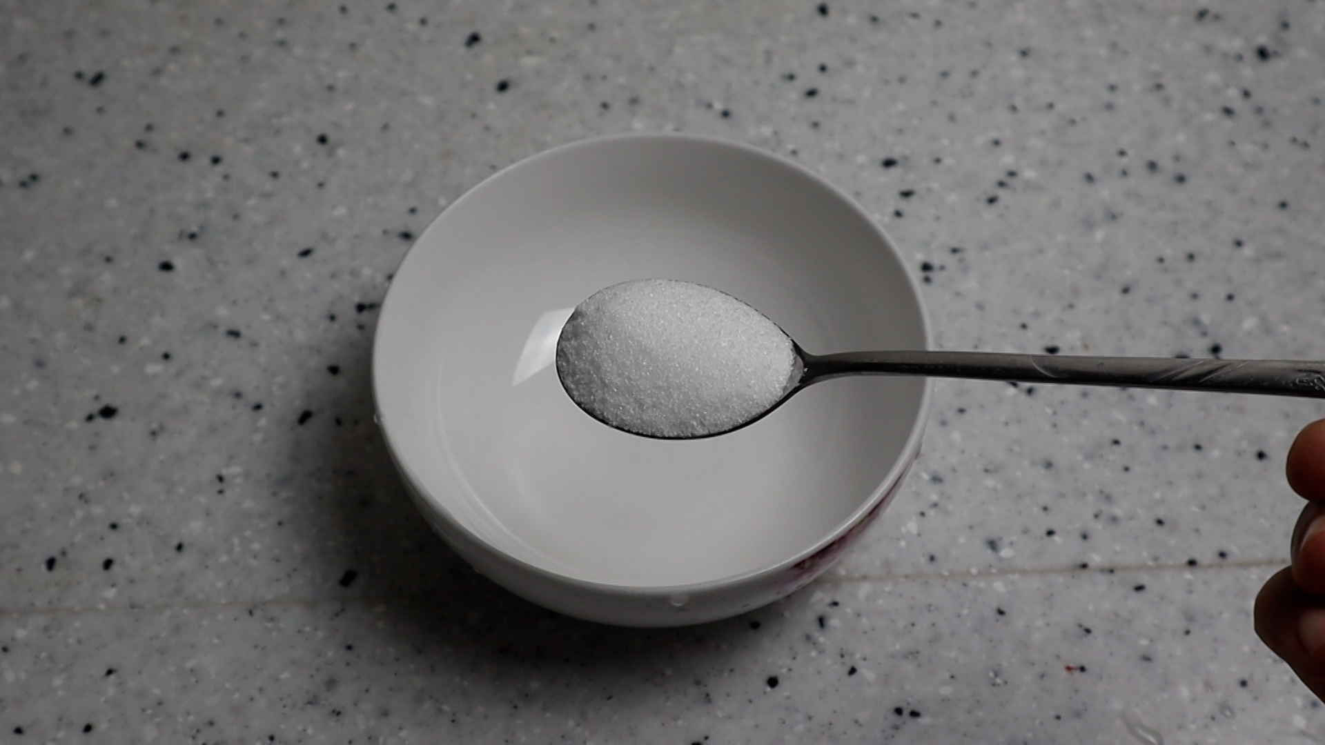 뜨거운물 4스푼 32g + 소고기 다시다 반스푼 5g