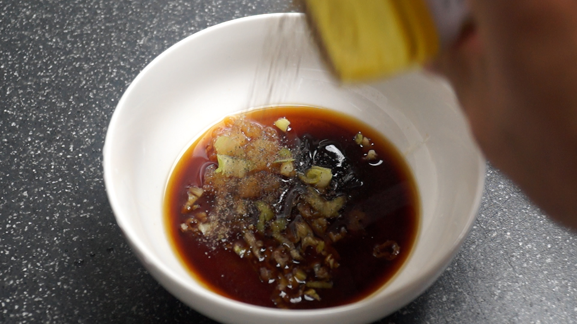 9. 육류 요리에 절대 빼먹을수 없는 후춧가루도 톡톡톡 뿌려서 설탕이 완전히 녹게 섞어주세요.
