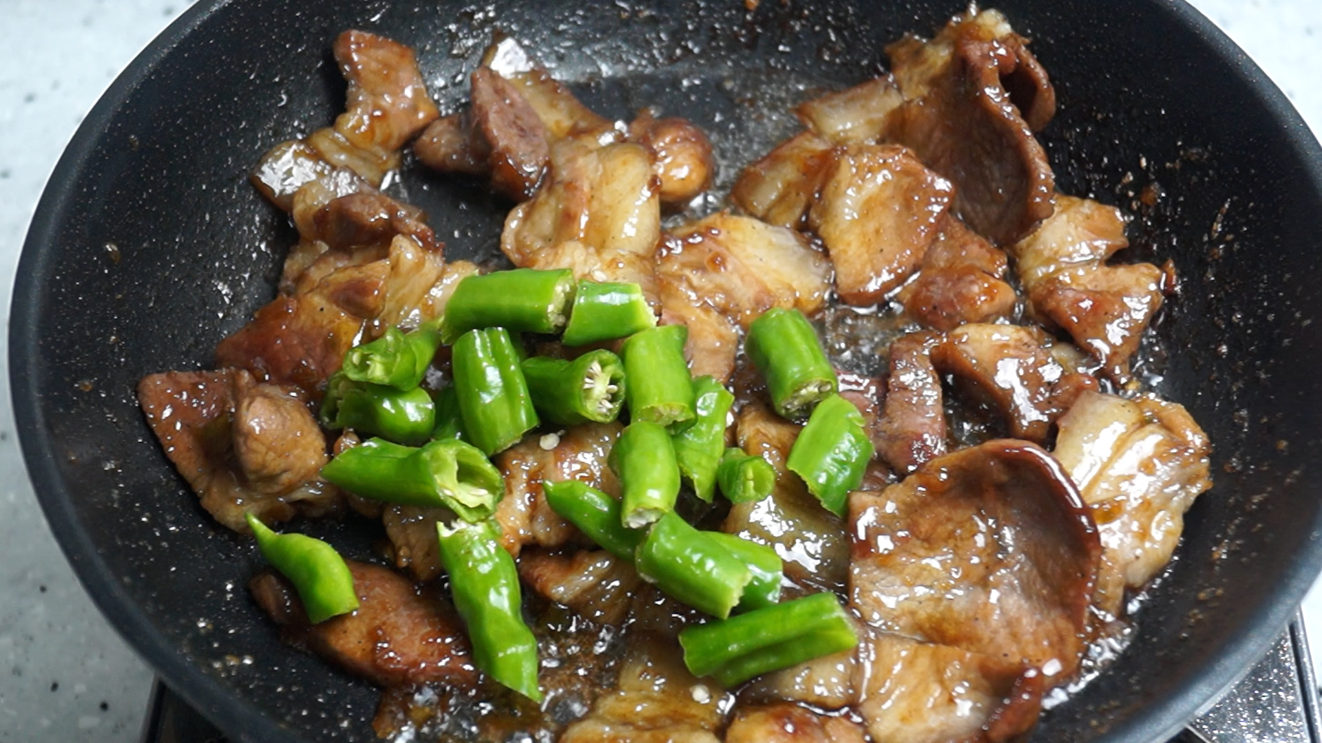 13. 깨끗히 씻은 꽈리고추는 3~4등분으로 잘라서 넣어주세요. 매운게 좋으시면 꽈리고추 대신 땡초를 사용해보세요.