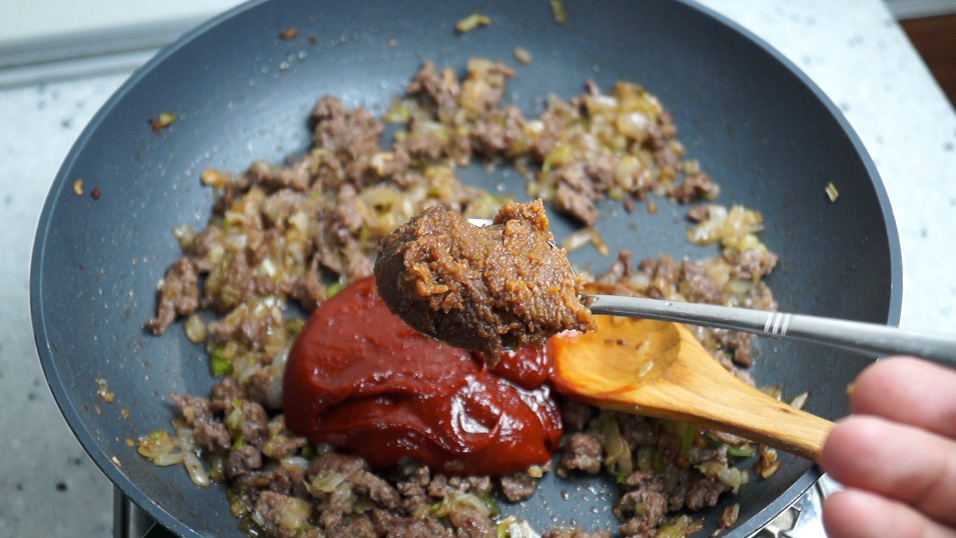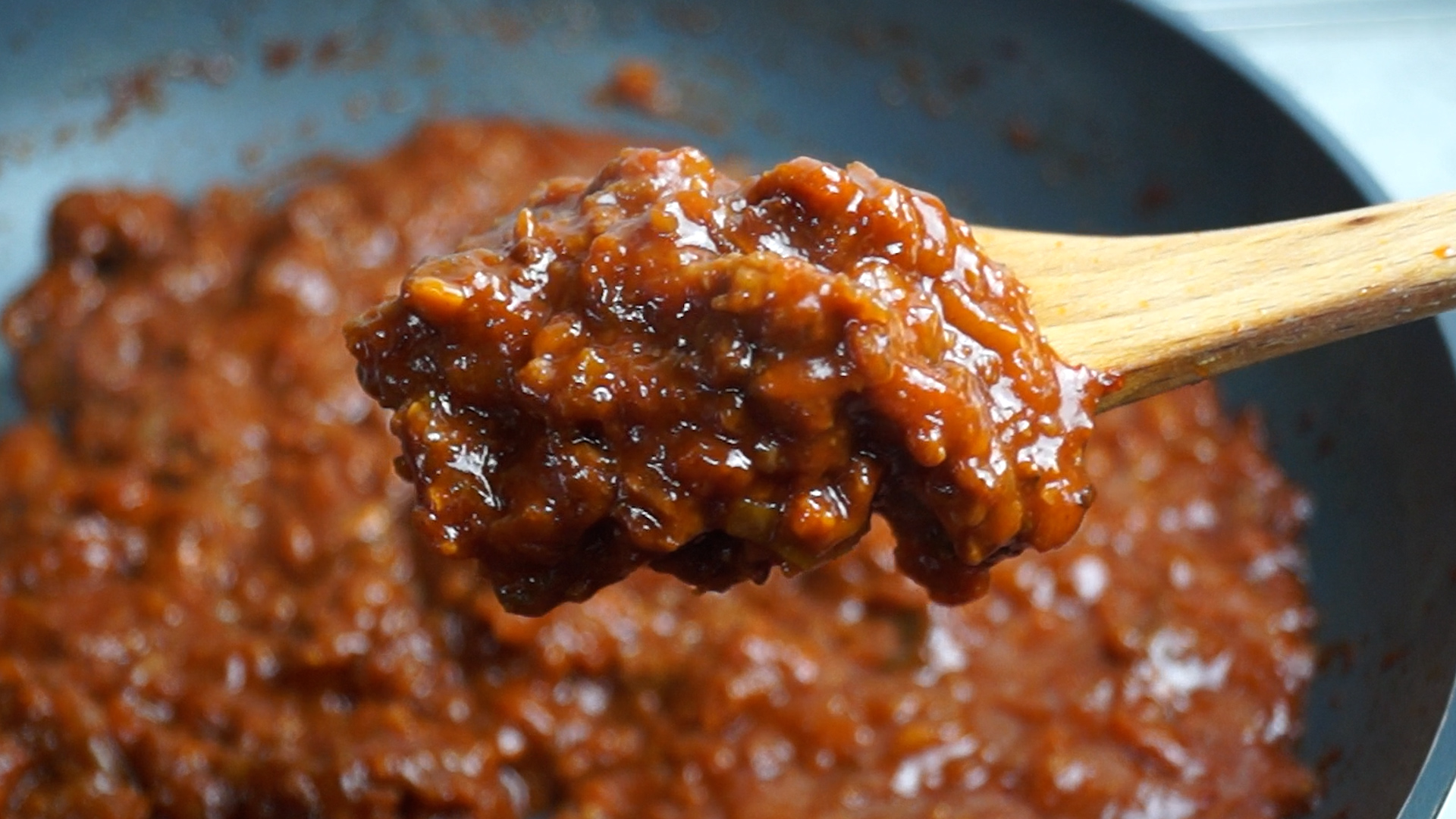 17. 쌈장 느낌아시죠? 그정도 점도로 졸여서 참기름 1스푼 넣고 섞어주세요.